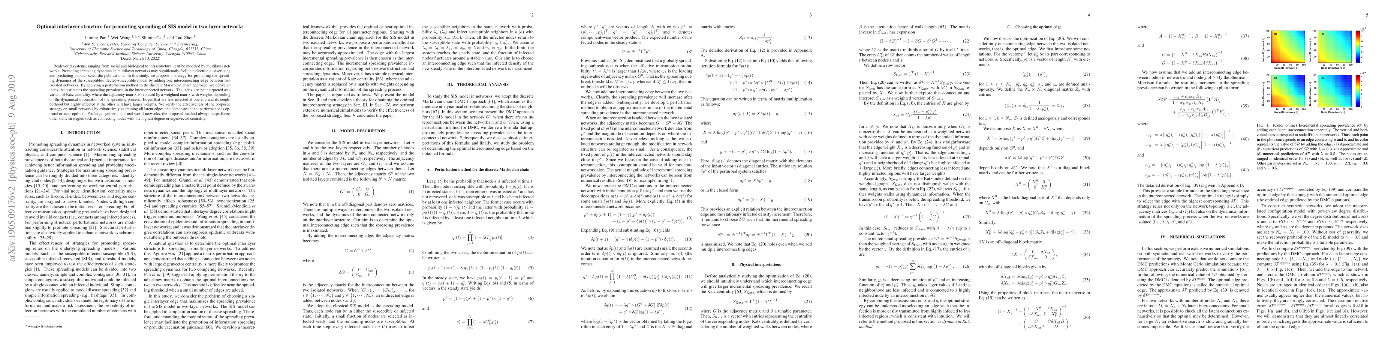 This paper proposes a strategy to enhance the spreading dynamics in two-layer networks using the SIS model by adding a single interconnecting edge. The authors derive an index based on a variant of Katz centrality to estimate spreading prevalence, showing optimal performance on small networks and outperforming other methods on larger networks.