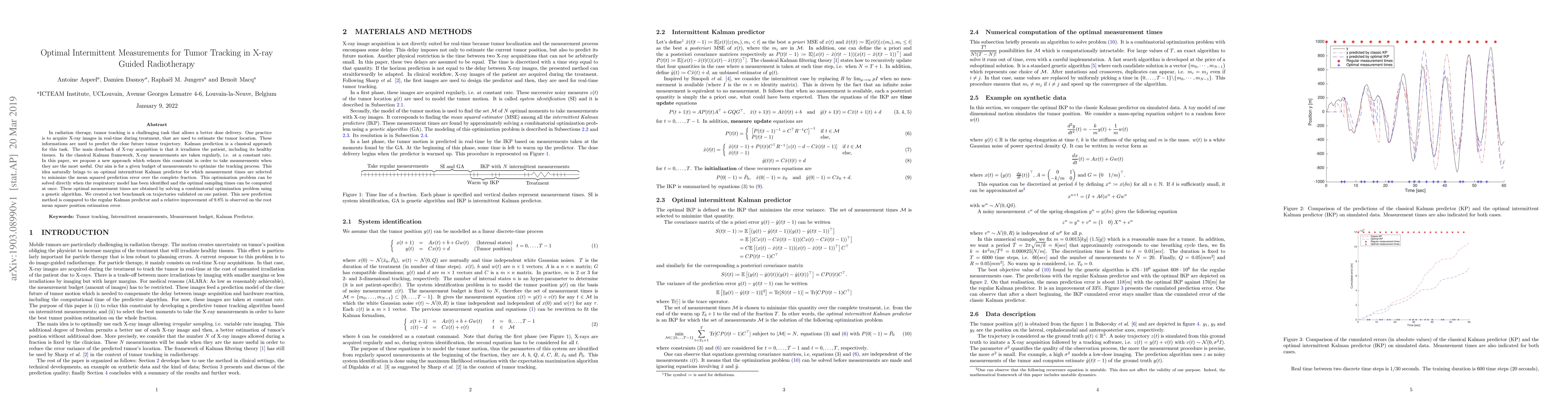 Researchers developed an optimized intermittent measurement approach for tumor tracking in radiotherapy, reducing mean squared prediction error by 9.8% compared to traditional Kalman predictors.