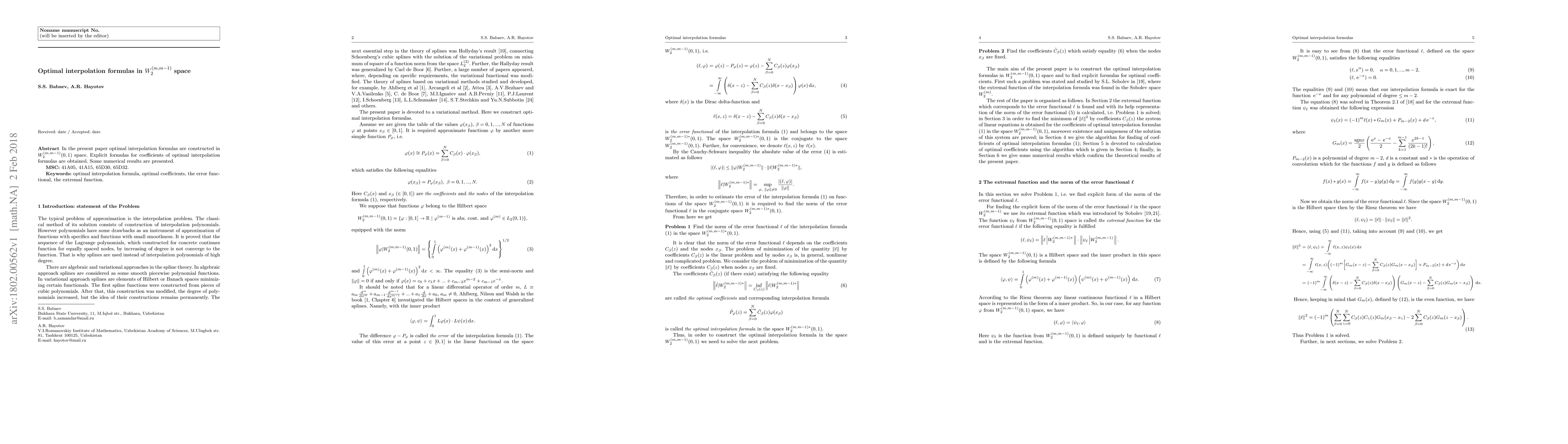 This paper constructs optimal interpolation formulas in the $W_2^{(m,m-1)}(0,1)$ space, deriving explicit coefficient formulas and presenting numerical results to validate the effectiveness of the proposed methods.