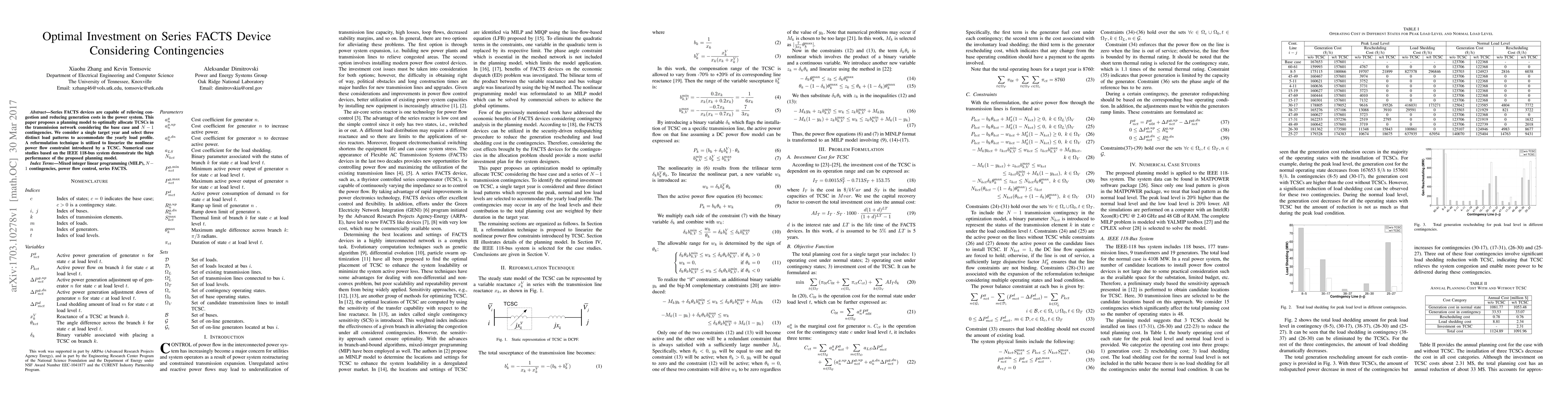 Series FACTS devices are capable of relieving congestion and reducing generation costs in the power system. This paper proposes a planning model to optimally allocate TCSCs in the transmission network considering the base case and $N-1$ contingencies. We consider a single target year and select three distinct load patterns to accommodate the yearly load profile. A reformulation technique is utilized to linearize the nonlinear power flow constraint introduced by a TCSC. Numerical case studies based on the IEEE 118-bus system demonstrate the high performance of the proposed planning model.