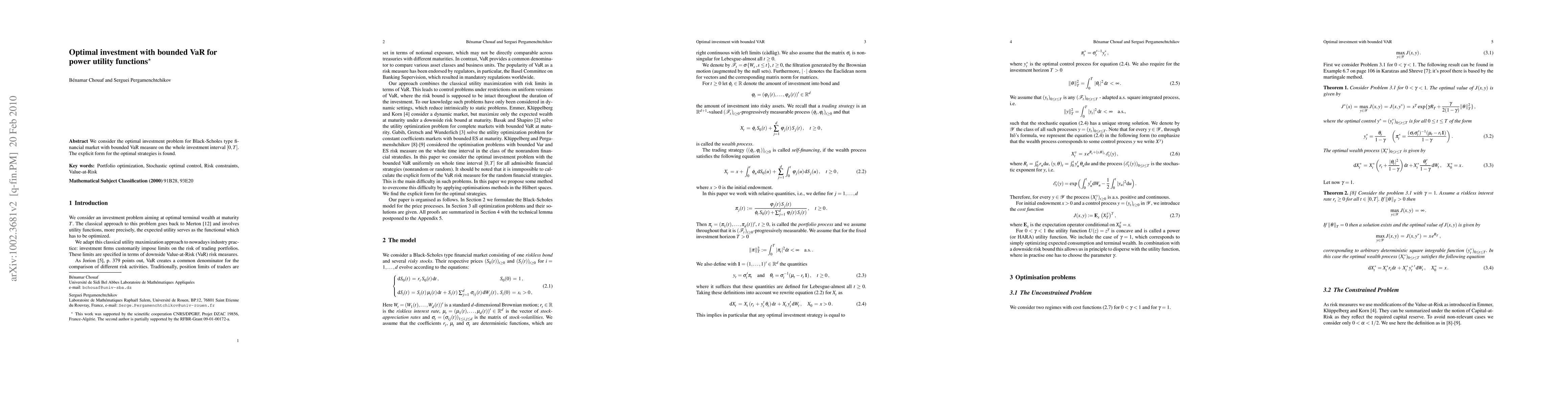 This paper explores the optimal investment strategy in a Black-Scholes market with a bounded Value at Risk (VaR) constraint over the investment horizon $[0,T]$. It derives an explicit form for the optimal investment strategy under power utility functions.