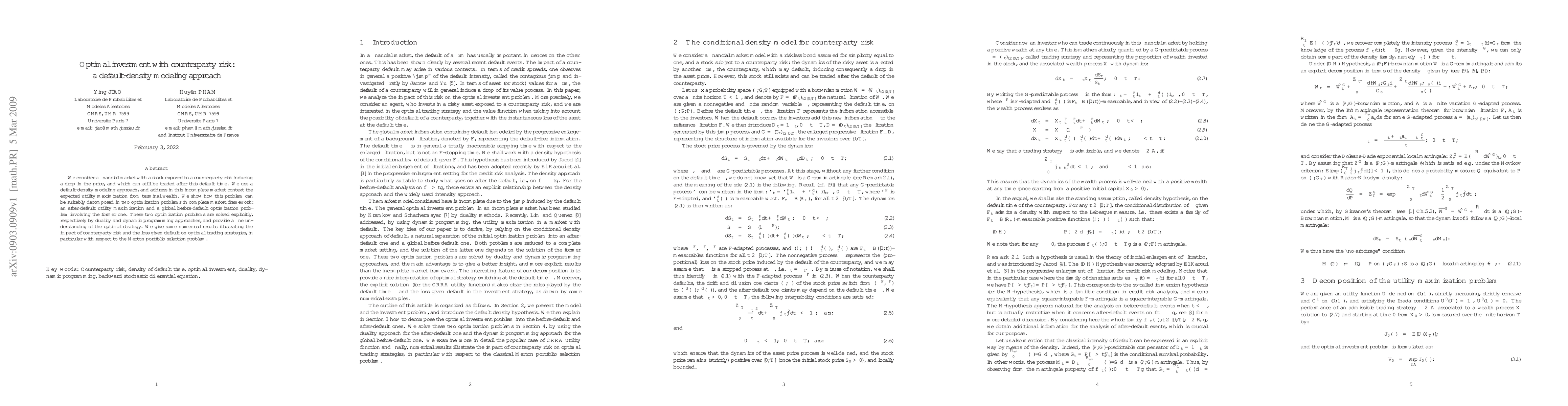This paper explores optimal investment strategies in a financial market with counterparty risk using a default-density modeling approach. It decomposes the expected utility maximization problem into two optimization problems solved via duality and dynamic programming, providing insights into the impact of counterparty risk on trading strategies.