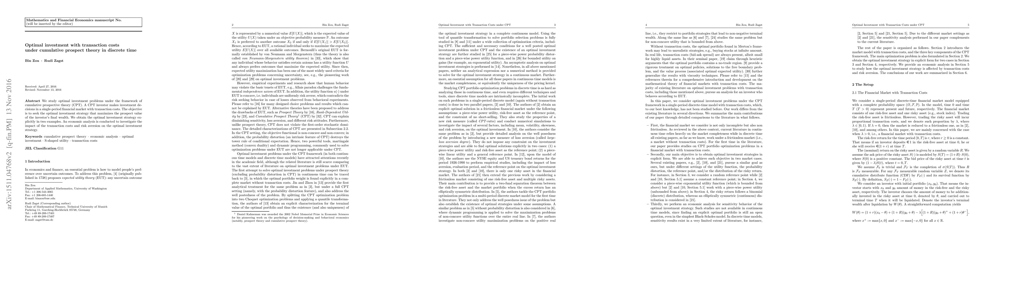 This paper explores optimal investment strategies under cumulative prospect theory in a single-period financial market with transaction costs. The study derives explicit optimal strategies and analyzes the effects of transaction costs and risk aversion on investment decisions.