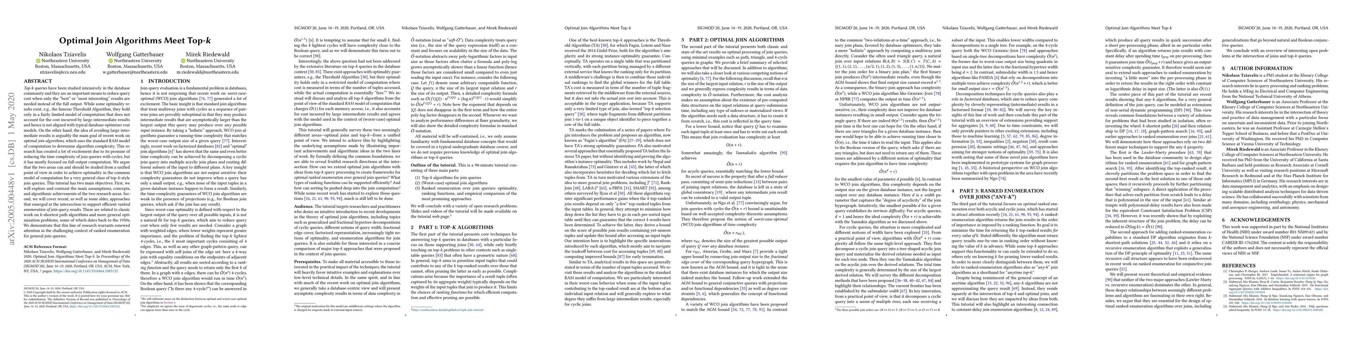 Top-k queries have been studied intensively in the database community and they are an important means to reduce query cost when only the "best" or "most interesting" results are needed instead of the full output. While some optimality results exist, e.g., the famous Threshold Algorithm, they hold only in a fairly limited model of computation that does not account for the cost incurred by large intermediate results and hence is not aligned with typical database-optimizer cost models. On the other hand, the idea of avoiding large intermediate results is arguably the main goal of recent work on optimal join algorithms, which uses the standard RAM model of computation to determine algorithm complexity. This research has created a lot of excitement due to its promise of reducing the time complexity of join queries with cycles, but it has mostly focused on full-output computation. We argue that the two areas can and should be studied from a unified point of view in order to achieve optimality in the common model of computation for a very general class of top-k-style join queries. This tutorial has two main objectives. First, we will explore and contrast the main assumptions, concepts, and algorithmic achievements of the two research areas. Second, we will cover recent, as well as some older, approaches that emerged at the intersection to support efficient ranked enumeration of join-query results. These are related to classic work on k-shortest path algorithms and more general optimization problems, some of which dates back to the 1950s. We demonstrate that this line of research warrants renewed attention in the challenging context of ranked enumeration for general join queries.