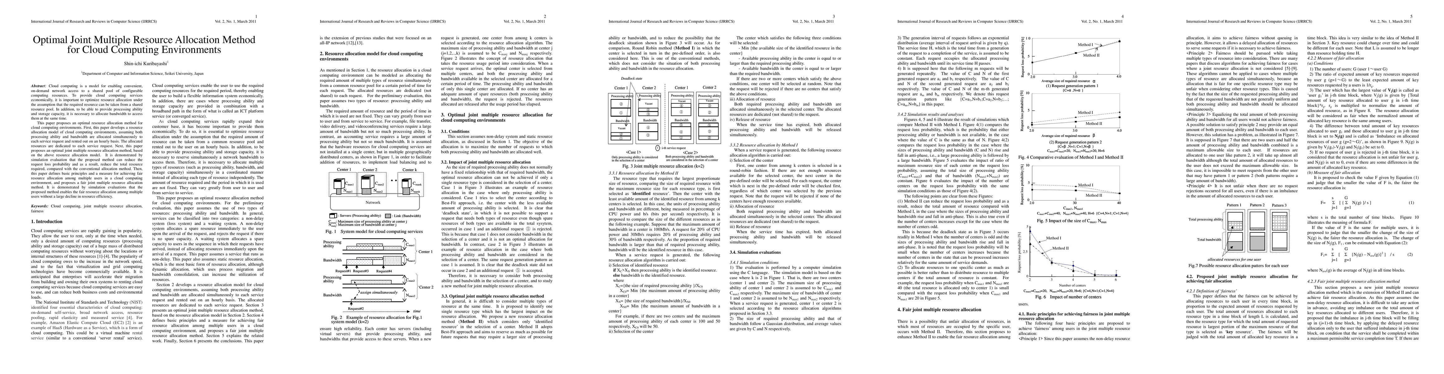 This paper proposes an optimal joint multiple resource allocation method for cloud computing environments, demonstrating reduced request loss and total resource requirements compared to conventional methods. It also introduces a fair allocation method that maintains resource efficiency among multiple users.