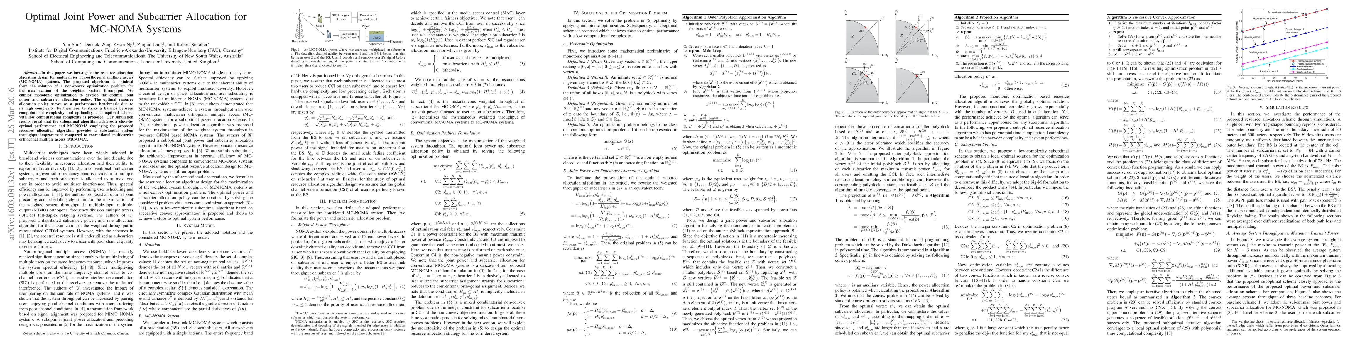 This paper proposes optimal joint power and subcarrier allocation algorithms for multicarrier non-orthogonal multiple access (MC-NOMA) systems, achieving high throughput via monotonic optimization. A suboptimal scheme with lower complexity is also introduced, which closely matches the performance of the optimal algorithm while significantly improving system throughput over conventional multicarrier orthogonal multiple access (MC-OMA).
