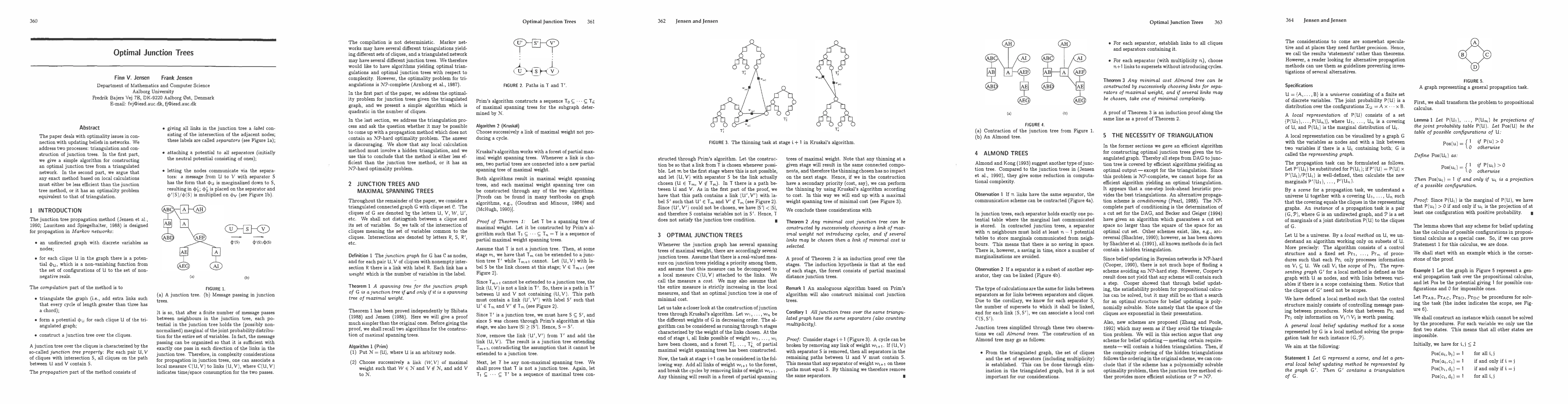 The paper presents an algorithm for constructing optimal junction trees from triangulated networks, addressing optimality issues in belief updating within network structures.