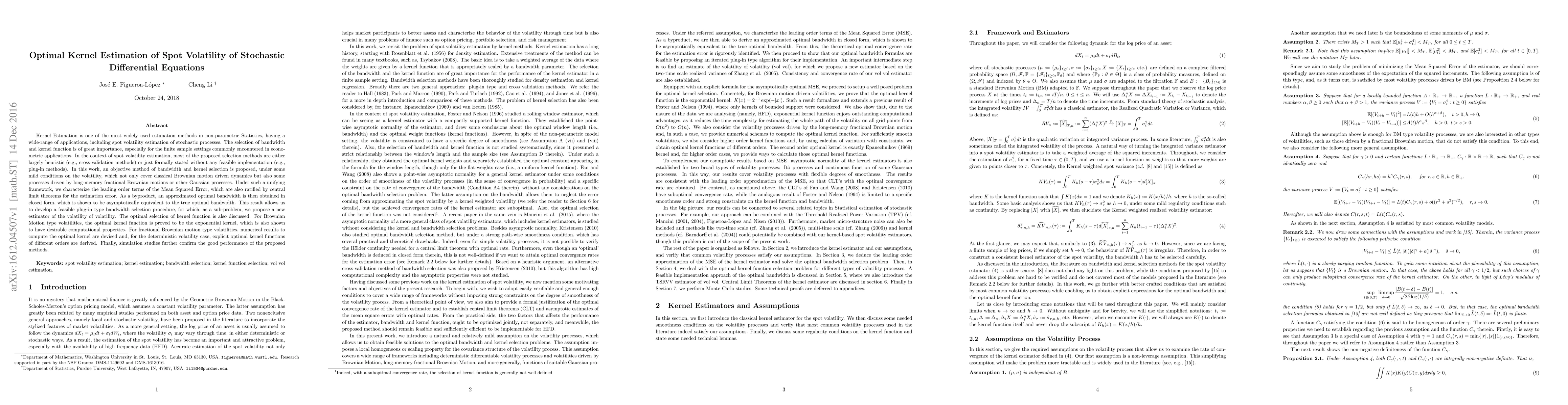This paper proposes an objective method for selecting bandwidth and kernel functions in kernel estimation for spot volatility of stochastic differential equations, providing an optimal plug-in type bandwidth selection procedure and discussing the optimal kernel function for different volatility types, validated through simulation studies.