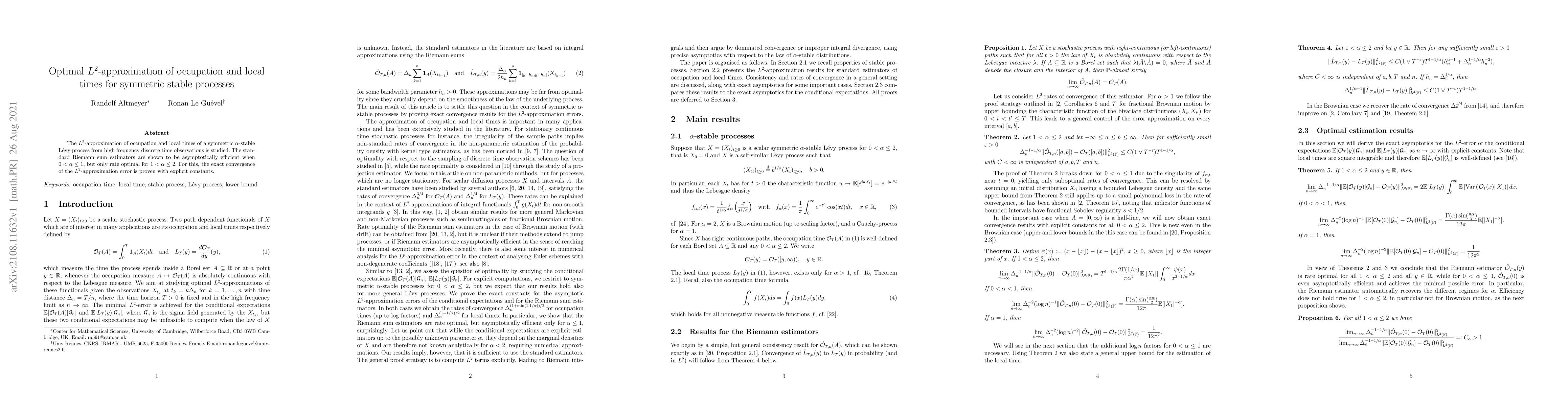 The L2-approximation of occupation and local times of a symmetric $\alpha$-stable L{\'e}vy process from high frequency discrete time observations is studied. The standard Riemann sum estimators are shown to be asymptotically efficient when 0 < $\alpha$ $\le$ 1, but only rate optimal for 1 < $\alpha$ $\le$ 2. For this, the exact convergence of the L2-approximation error is proven with explicit constants.