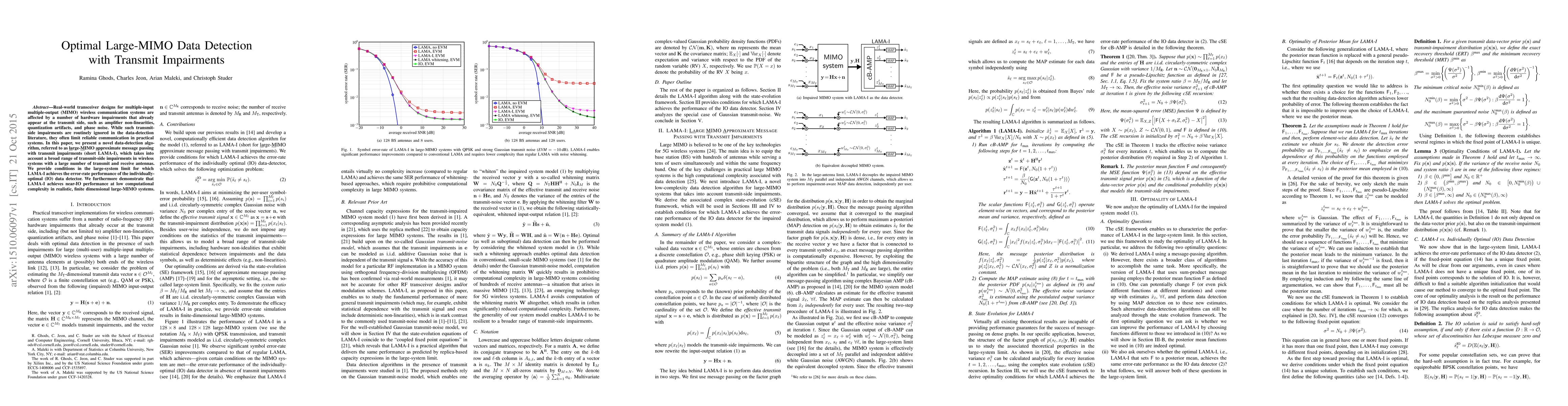 This paper introduces a novel data-detection algorithm, LAMA-I, for large-MIMO systems that considers transmit impairments like amplifier non-linearities. It demonstrates that LAMA-I achieves near-optimal error-rate performance with low computational complexity.