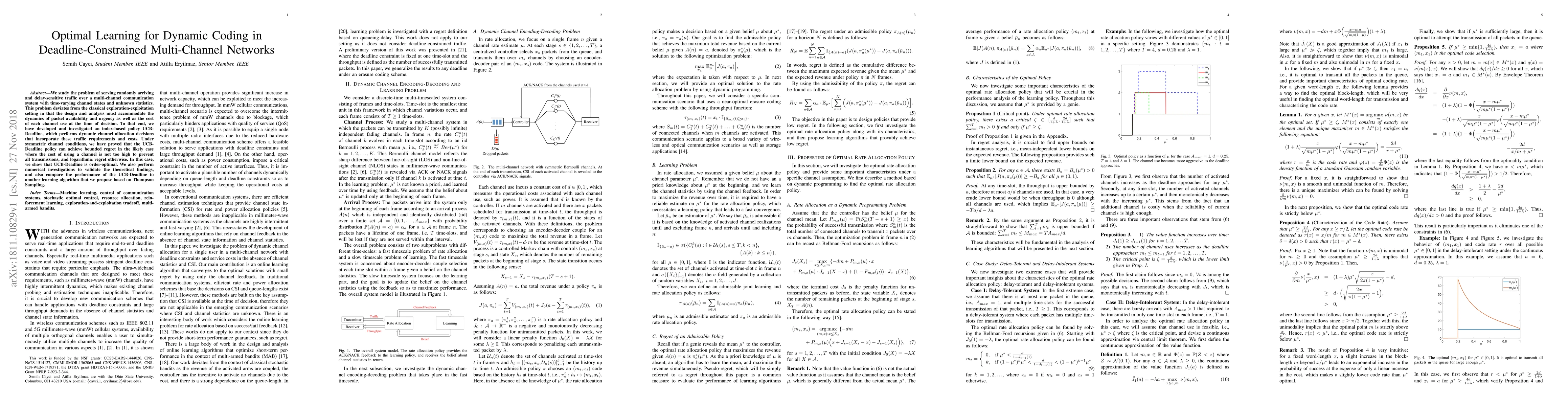 Researchers developed an algorithm called UCB-Deadline to optimize learning for dynamic coding in networks with deadline constraints. It achieves bounded or logarithmic regret under different conditions, outperforming another proposed algorithm.