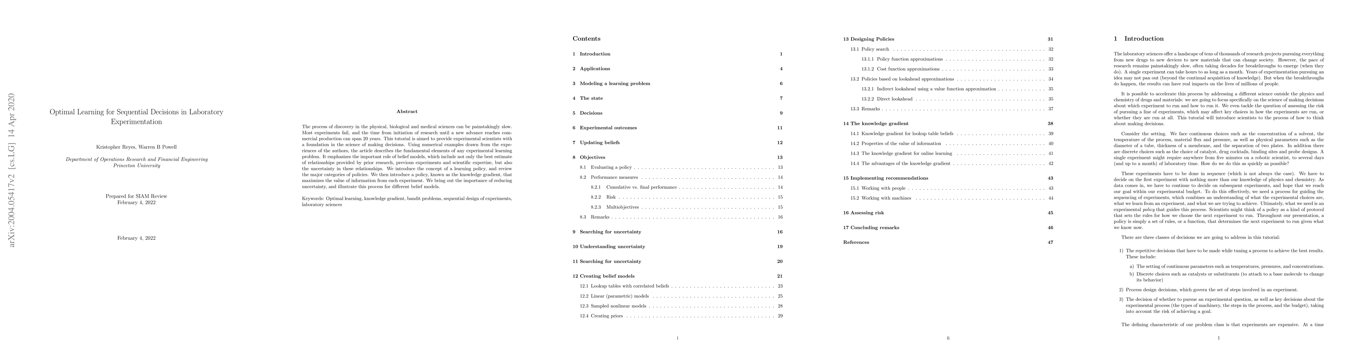 The process of discovery in the physical, biological and medical sciences can be painstakingly slow. Most experiments fail, and the time from initiation of research until a new advance reaches commercial production can span 20 years. This tutorial is aimed to provide experimental scientists with a foundation in the science of making decisions. Using numerical examples drawn from the experiences of the authors, the article describes the fundamental elements of any experimental learning problem. It emphasizes the important role of belief models, which include not only the best estimate of relationships provided by prior research, previous experiments and scientific expertise, but also the uncertainty in these relationships. We introduce the concept of a learning policy, and review the major categories of policies. We then introduce a policy, known as the knowledge gradient, that maximizes the value of information from each experiment. We bring out the importance of reducing uncertainty, and illustrate this process for different belief models.