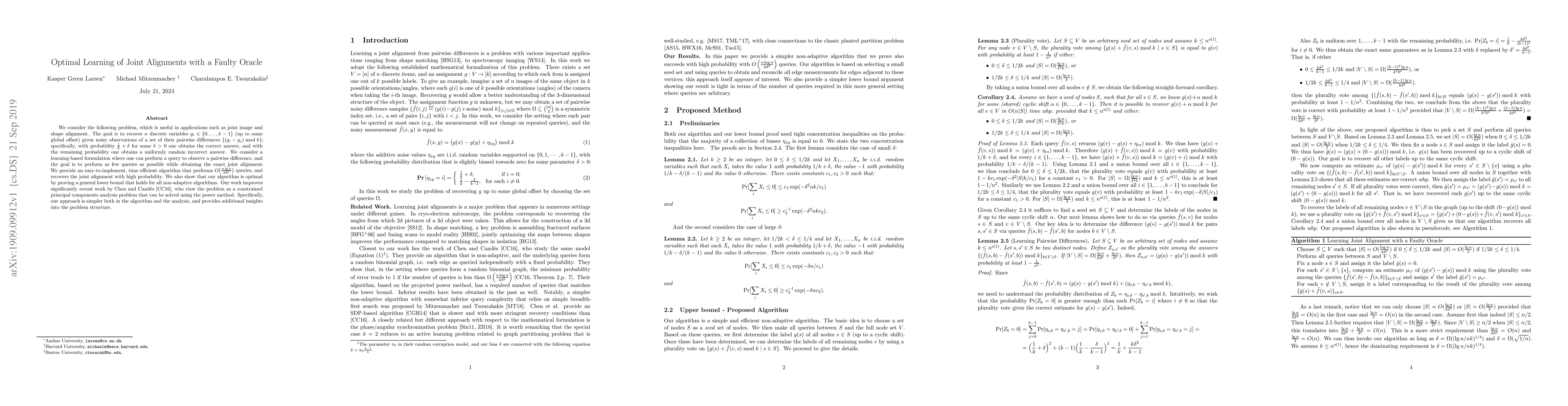 We consider the following problem, which is useful in applications such as joint image and shape alignment. The goal is to recover $n$ discrete variables $g_i \in \{0, \ldots, k-1\}$ (up to some global offset) given noisy observations of a set of their pairwise differences $\{(g_i - g_j) \bmod k\}$; specifically, with probability $\frac{1}{k}+\delta$ for some $\delta > 0$ one obtains the correct answer, and with the remaining probability one obtains a uniformly random incorrect answer. We consider a learning-based formulation where one can perform a query to observe a pairwise difference, and the goal is to perform as few queries as possible while obtaining the exact joint alignment. We provide an easy-to-implement, time efficient algorithm that performs $O\big(\frac{n \lg n}{k \delta^2}\big)$ queries, and recovers the joint alignment with high probability. We also show that our algorithm is optimal by proving a general lower bound that holds for all non-adaptive algorithms. Our work improves significantly recent work by Chen and Cand\'{e}s \cite{chen2016projected}, who view the problem as a constrained principal components analysis problem that can be solved using the power method. Specifically, our approach is simpler both in the algorithm and the analysis, and provides additional insights into the problem structure.