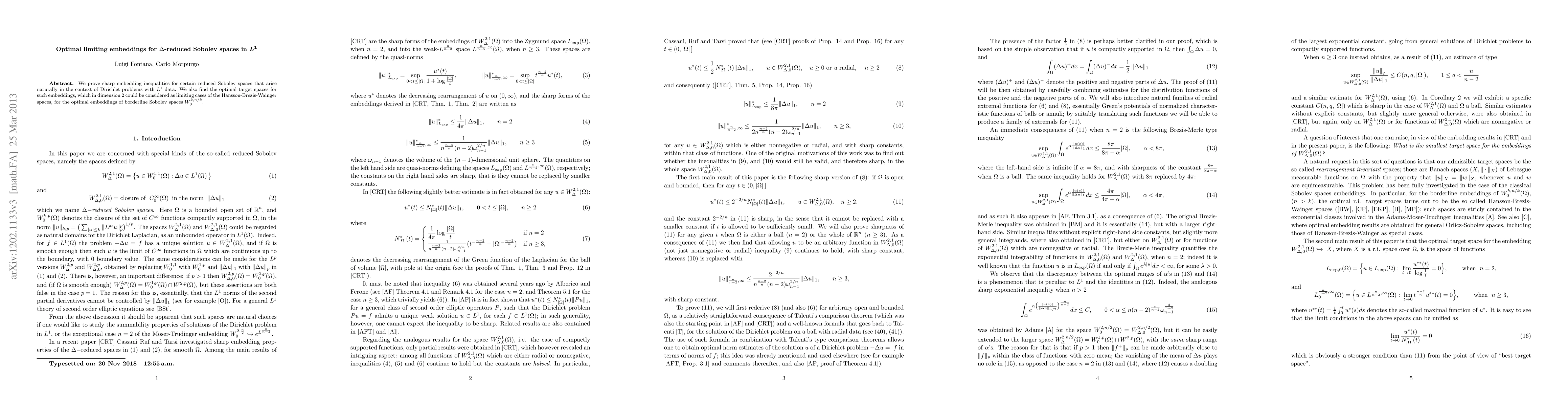 This paper establishes sharp embedding inequalities for $\Delta$-reduced Sobolev spaces relevant to Dirichlet problems with $L^1$ data, and identifies the optimal target spaces for these embeddings, particularly in dimension 2, which serve as limiting cases of the Hansson-Brezis-Wainger spaces.