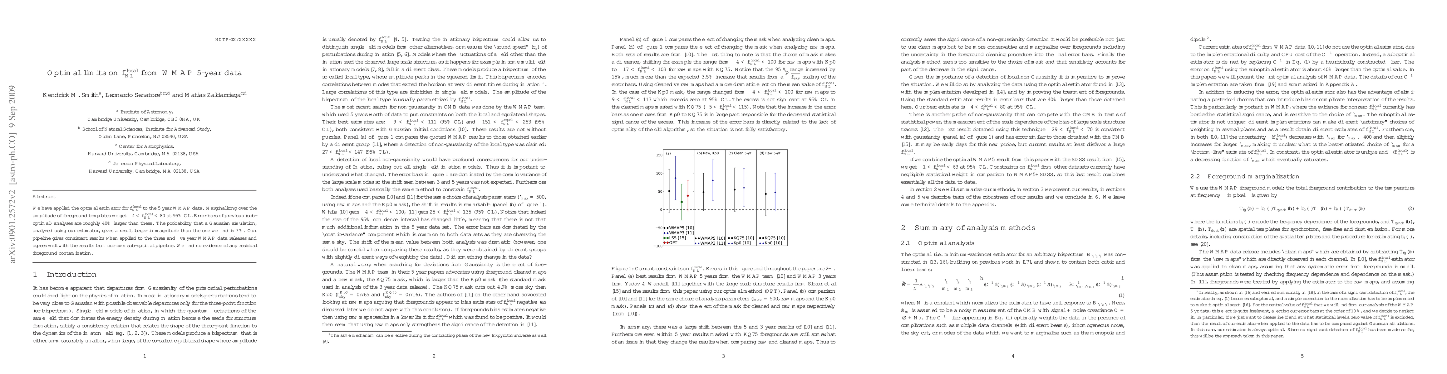 New analysis of WMAP data suggests optimal limits on the non-linear power spectrum parameter f_NL^local range from -4 to 80, with an error margin 40% smaller than previous estimates.