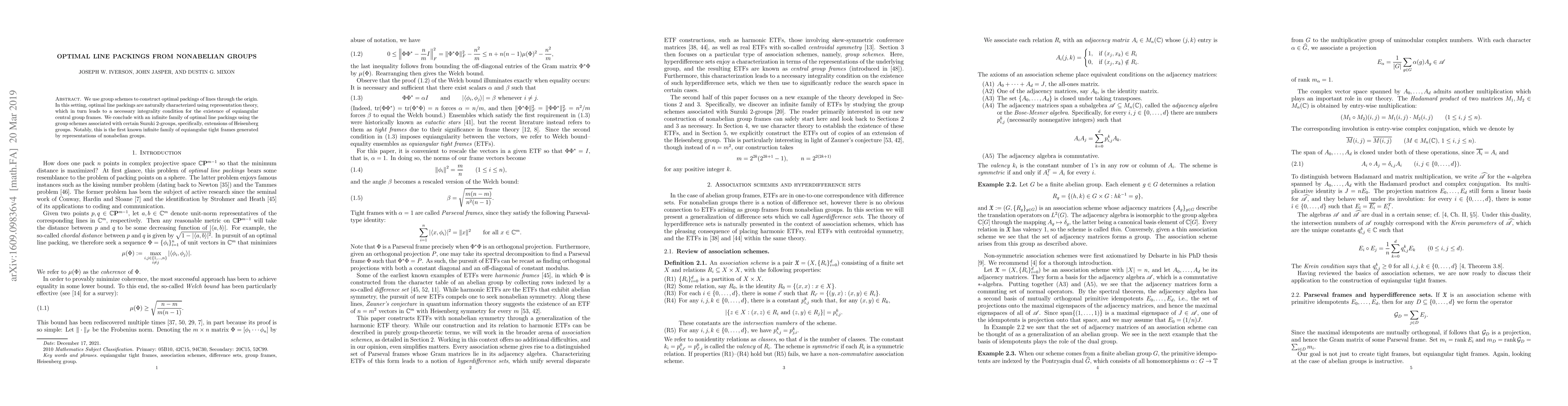 We use group schemes to construct optimal packings of lines through the origin. In this setting, optimal line packings are naturally characterized using representation theory, which in turn leads to a necessary integrality condition for the existence of equiangular central group frames. We conclude with an infinite family of optimal line packings using the group schemes associated with certain Suzuki 2-groups, specifically, extensions of Heisenberg groups. Notably, this is the first known infinite family of equiangular tight frames generated by representations of nonabelian groups.