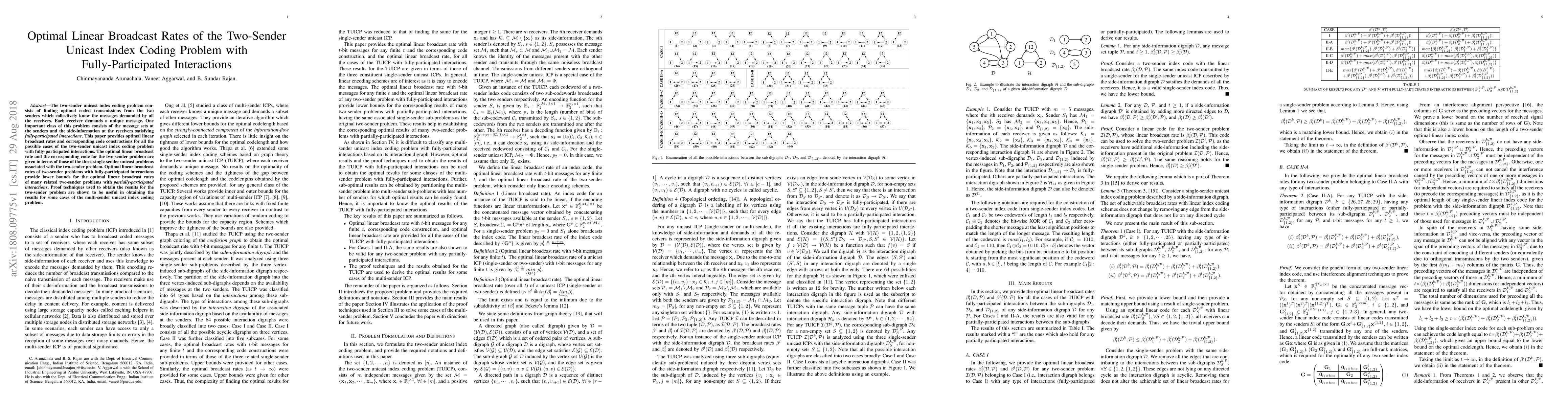 The two-sender unicast index coding problem consists of finding optimal coded transmissions from the two senders which collectively know the messages demanded by all the receivers. Each receiver demands a unique message. One important class of this problem consists of the message sets at the senders and the side-information at the receivers satisfying \emph{fully-participated interactions}. This paper provides optimal linear broadcast rates and corresponding code constructions for all the possible cases of the two-sender unicast index coding problem with fully-participated interactions. The optimal linear broadcast rate and the corresponding code for the two-sender problem are given in terms of those of the three single-sender unicast problems associated with the two-sender problem. Optimal linear broadcast rates of two-sender problems with fully-participated interactions provide lower bounds for the optimal linear broadcast rates of many related two-sender problems with \emph{partially-participated interactions}. Proof techniques used to obtain the results for the two-sender problem are shown to be useful in obtaining the results for some cases of the multi-sender unicast index coding problem.