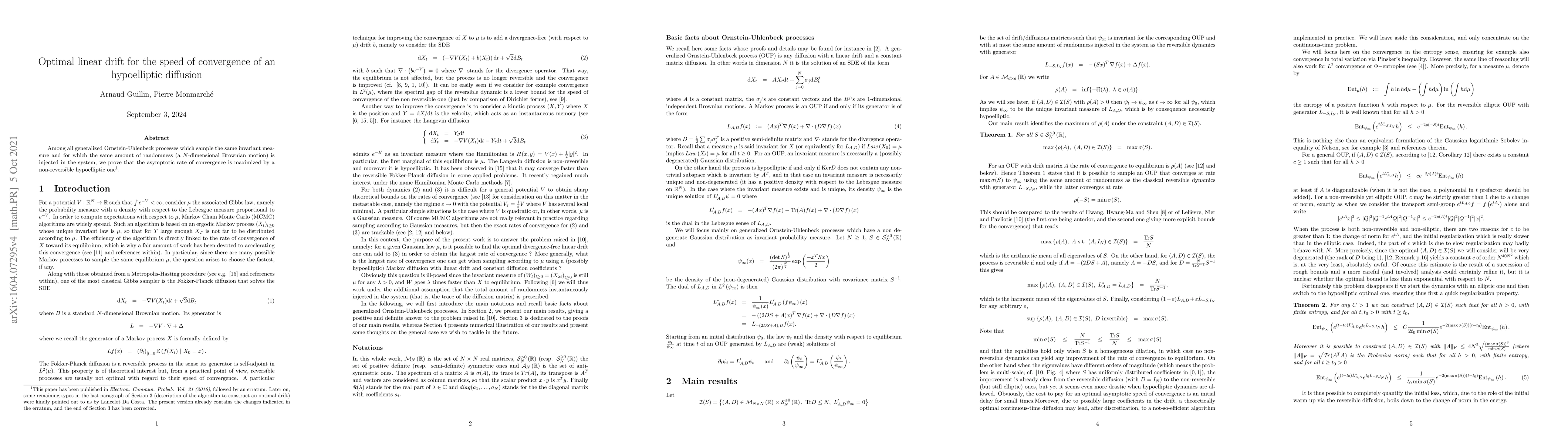 Summary: This paper demonstrates that among generalized Ornstein-Uhlenbeck processes with identical invariant measures and randomness, the fastest convergence rate is achieved by a non-reversible hypoelliptic diffusion. The study highlights the optimal linear drift for this speed of convergence.