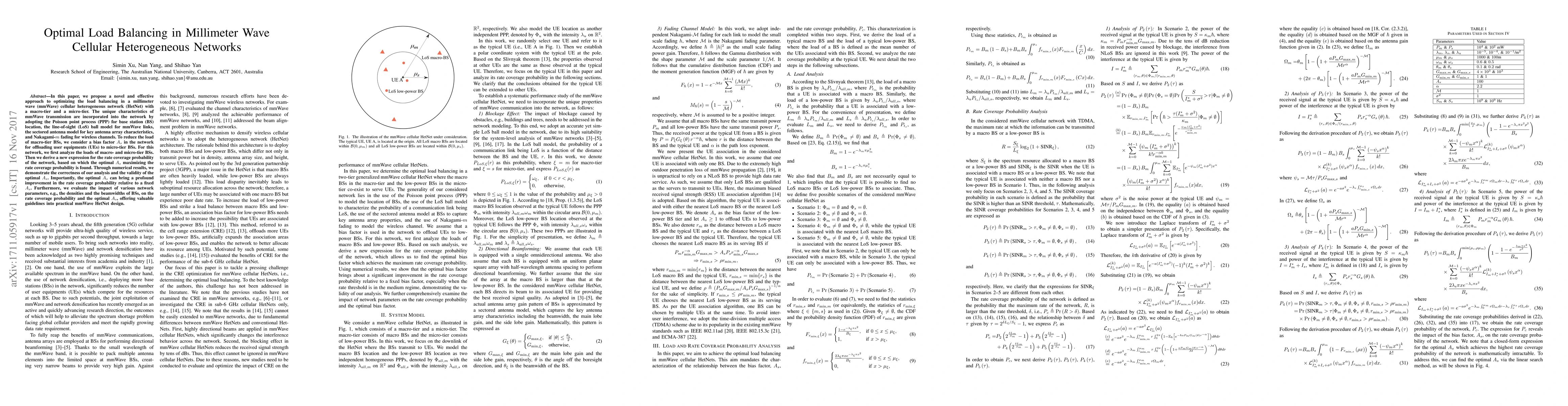 This paper proposes a novel method for optimizing load balancing in millimeter wave cellular heterogeneous networks, incorporating unique mmWave characteristics. The optimal bias factor for offloading users to micro-tier base stations is derived, demonstrating significant improvements in rate coverage probability compared to fixed values.