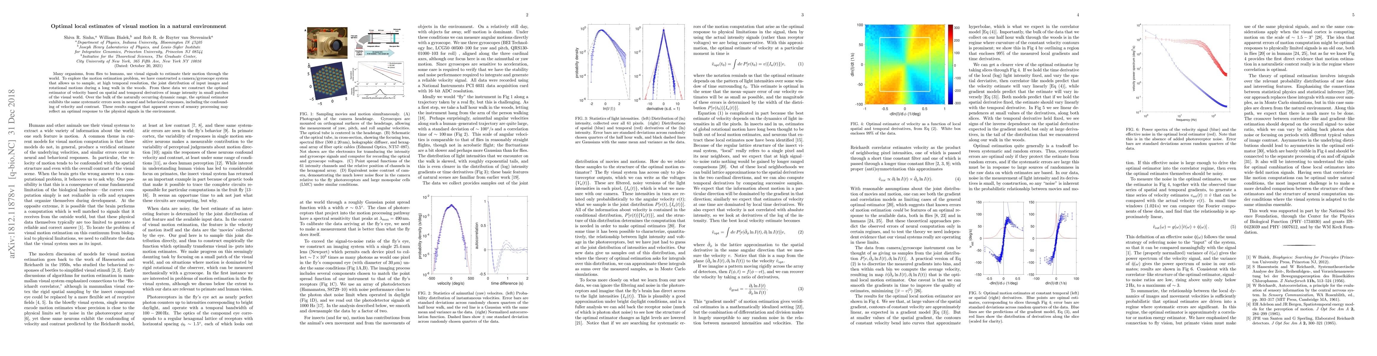 Many organisms, from flies to humans, use visual signals to estimate their motion through the world. To explore the motion estimation problem, we have constructed a camera/gyroscope system that allows us to sample, at high temporal resolution, the joint distribution of input images and rotational motions during a long walk in the woods. From these data we construct the optimal estimator of velocity based on spatial and temporal derivatives of image intensity in small patches of the visual world. Over the bulk of the naturally occurring dynamic range, the optimal estimator exhibits the same systematic errors seen in neural and behavioral responses, including the confounding of velocity and contrast. These results suggest that apparent errors of sensory processing may reflect an optimal response to the physical signals in the environment.