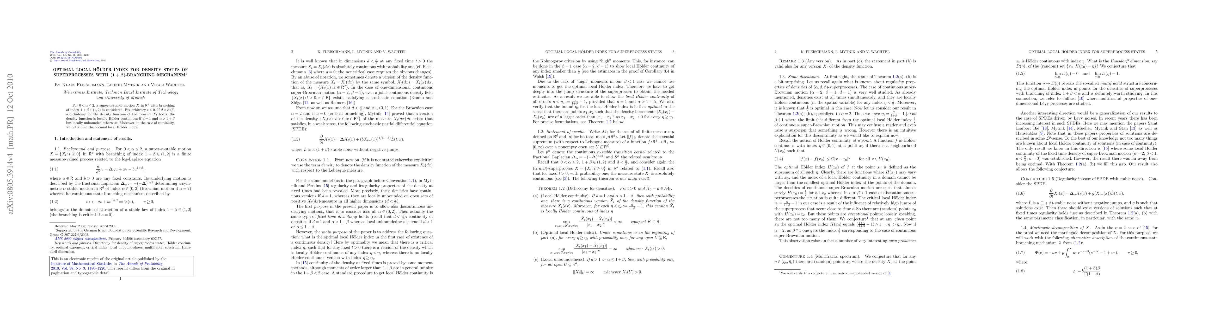 This paper investigates the density states of a super-$\alpha$-stable motion with a $(1+\beta)$-branching mechanism, finding that when $d<\alpha/\beta$, the density function is locally H\"{o}lder continuous if $d=1$ and $\alpha>1+\beta$, and determines the optimal local H\"{o}lder index in this case.