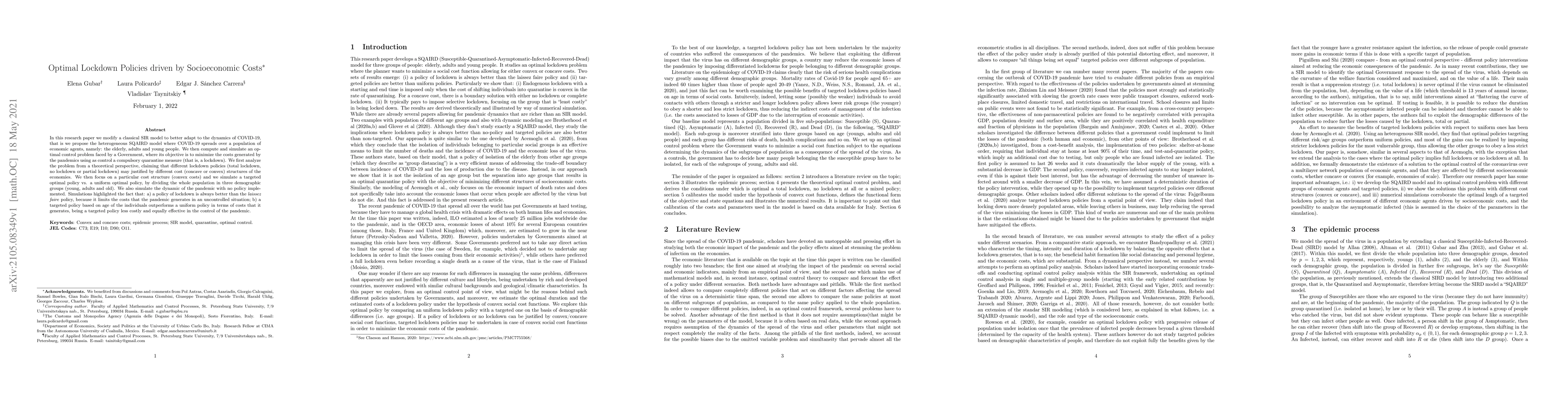 This research modifies the classical SIR model to the SQAIRD model, considering socioeconomic factors, and evaluates optimal lockdown policies to minimize pandemic costs. Simulations show that targeted lockdowns based on demographic groups are more effective and less costly compared to uniform policies or no intervention.