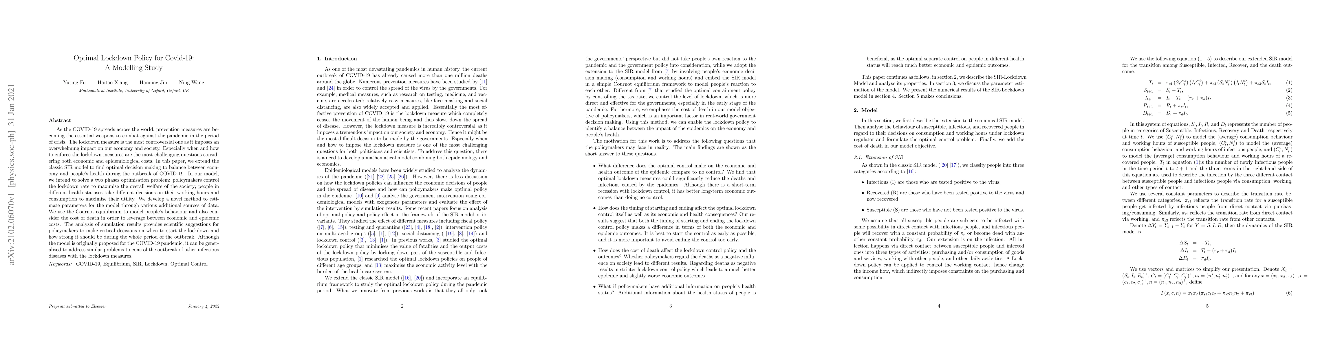 A study models the optimal lockdown policy for COVID-19 to balance economic and health costs, using a novel method to estimate parameters and considering the cost of death to inform critical decisions.