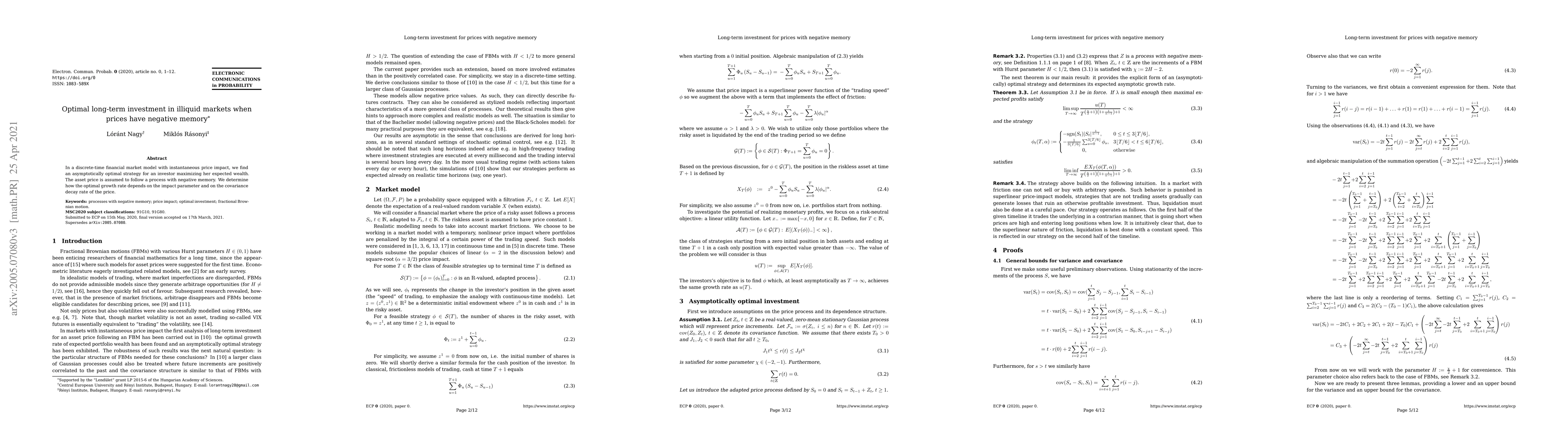 In a discrete-time financial market model with instantaneous price impact, we find an asymptotically optimal strategy for an investor maximizing her expected wealth. The asset price is assumed to follow a process with negative memory. We determine how the optimal growth rate depends on the impact parameter and on the covariance decay rate of the price.