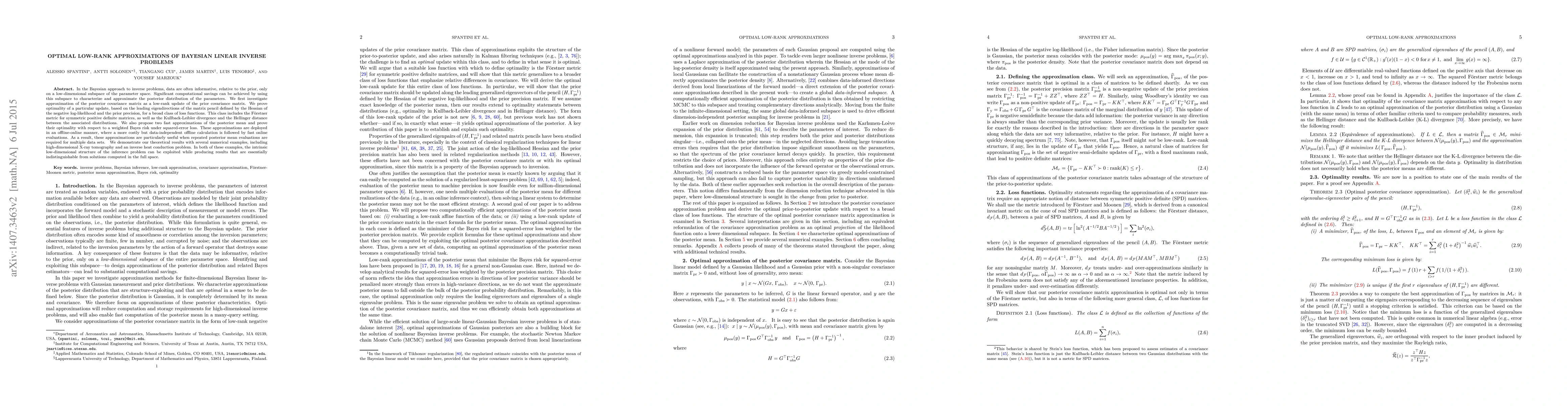 This paper develops optimal low-rank approximations for Bayesian linear inverse problems, focusing on computational efficiency by leveraging the low-dimensional subspace where data provide significant information. It proposes optimal low-rank updates to the posterior covariance matrix and fast approximations for the posterior mean, demonstrating their effectiveness through numerical examples in high-dimensional applications.