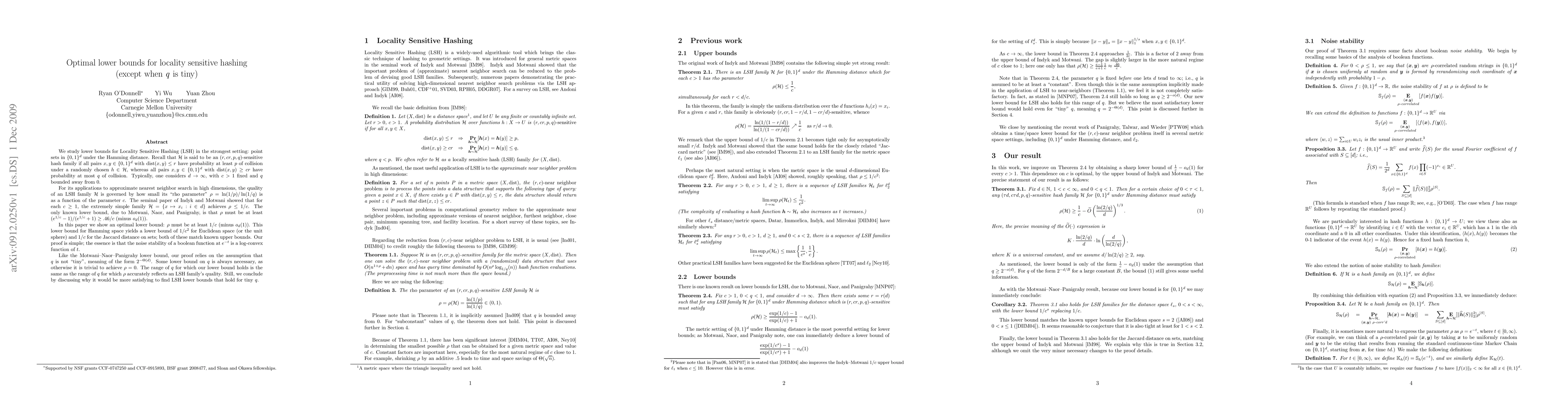 This paper establishes an optimal lower bound for the rho parameter in Locality Sensitive Hashing (LSH) for point sets in {0,1}^d under the Hamming distance, showing that rho must be at least 1/c (minus o_d(1)). This result matches known upper bounds for Euclidean space and the Jaccard distance on sets.