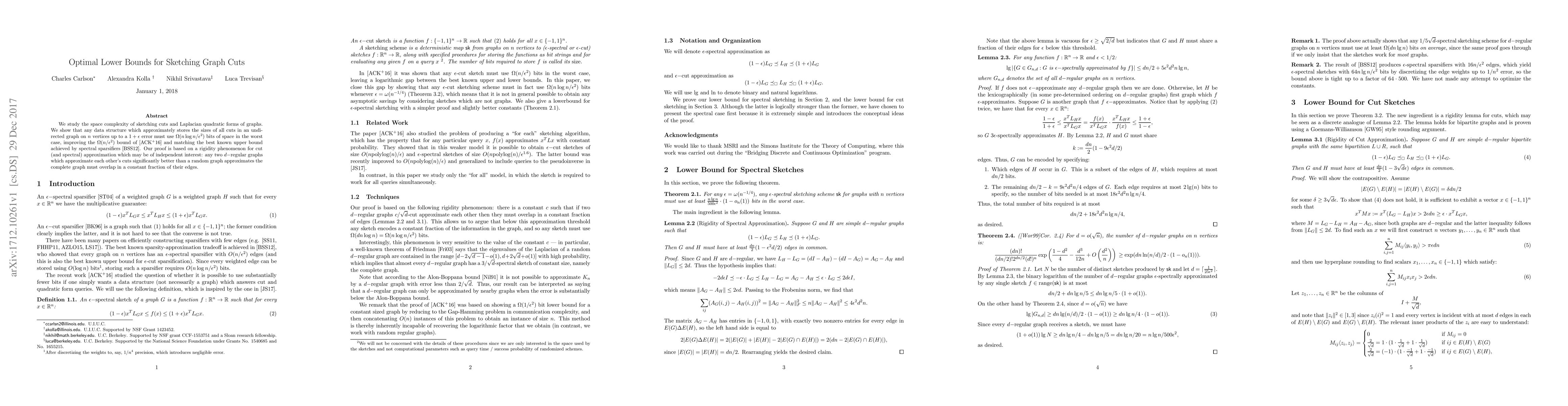 We study the space complexity of sketching cuts and Laplacian quadratic forms of graphs. We show that any data structure which approximately stores the sizes of all cuts in an undirected graph on $n$ vertices up to a $1+\epsilon$ error must use $\Omega(n\log n/\epsilon^2)$ bits of space in the worst case, improving the $\Omega(n/\epsilon^2)$ bound of Andoni et al. and matching the best known upper bound achieved by spectral sparsifiers. Our proof is based on a rigidity phenomenon for cut (and spectral) approximation which may be of independent interest: any two $d-$regular graphs which approximate each other's cuts significantly better than a random graph approximates the complete graph must overlap in a constant fraction of their edges.