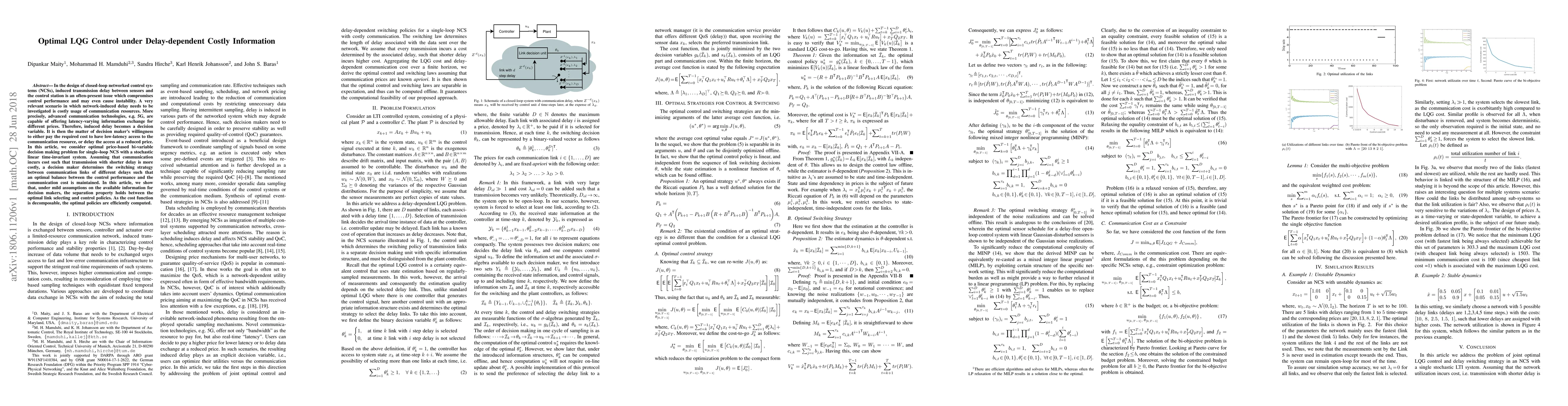 In the design of closed-loop networked control systems (NCSs), induced transmission delay between sensors and the control station is an often-present issue which compromises control performance and may even cause instability. A very relevant scenario in which network-induced delay needs to be investigated is costly usage of communication resources. More precisely, advanced communication technologies, e.g. 5G, are capable of offering latency-varying information exchange for different prices. Therefore, induced delay becomes a decision variable. It is then the matter of decision maker's willingness to either pay the required cost to have low-latency access to the communication resource, or delay the access at a reduced price. In this article, we consider optimal price-based bi-variable decision making problem for single-loop NCS with a stochastic linear time-invariant system. Assuming that communication incurs cost such that transmission with shorter delay is more costly, a decision maker determines the switching strategy between communication links of different delays such that an optimal balance between the control performance and the communication cost is maintained. In this article, we show that, under mild assumptions on the available information for decision makers, the separation property holds between the optimal link selecting and control policies. As the cost function is decomposable, the optimal policies are efficiently computed.