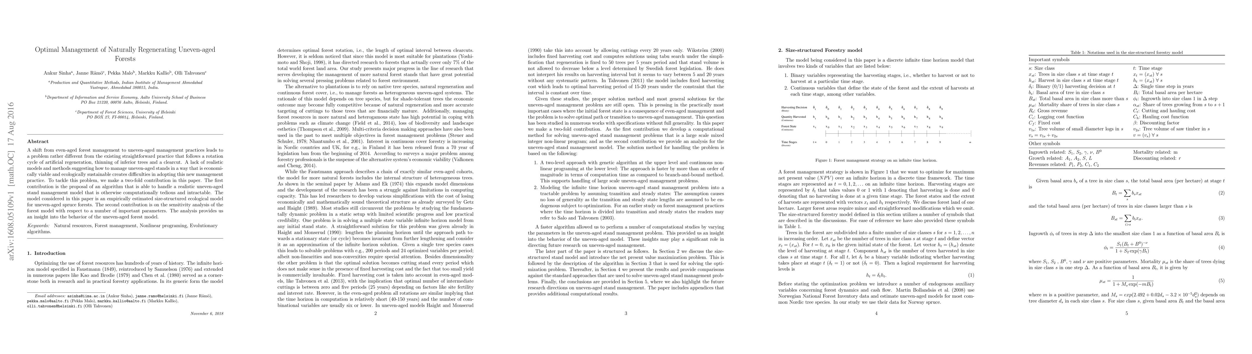 This paper proposes an algorithm for managing naturally regenerating uneven-aged spruce forests, addressing the complexity of such systems. It also conducts a sensitivity analysis to understand the ecological model's behavior, aiming for both economic viability and ecological sustainability.