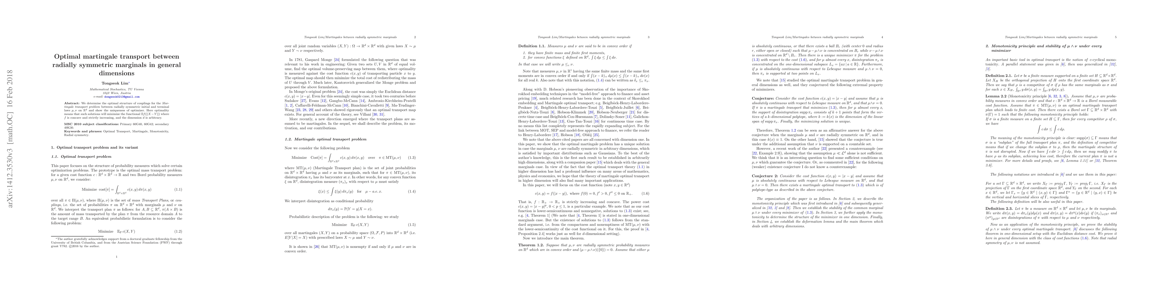 This paper identifies the optimal structure for couplings in the Martingale Transport Problem, focusing on radially symmetric initial and terminal laws in any dimension. It proves the uniqueness of the optimal solution, which minimizes the functional E|X-Y|^p for 0<p<=1.