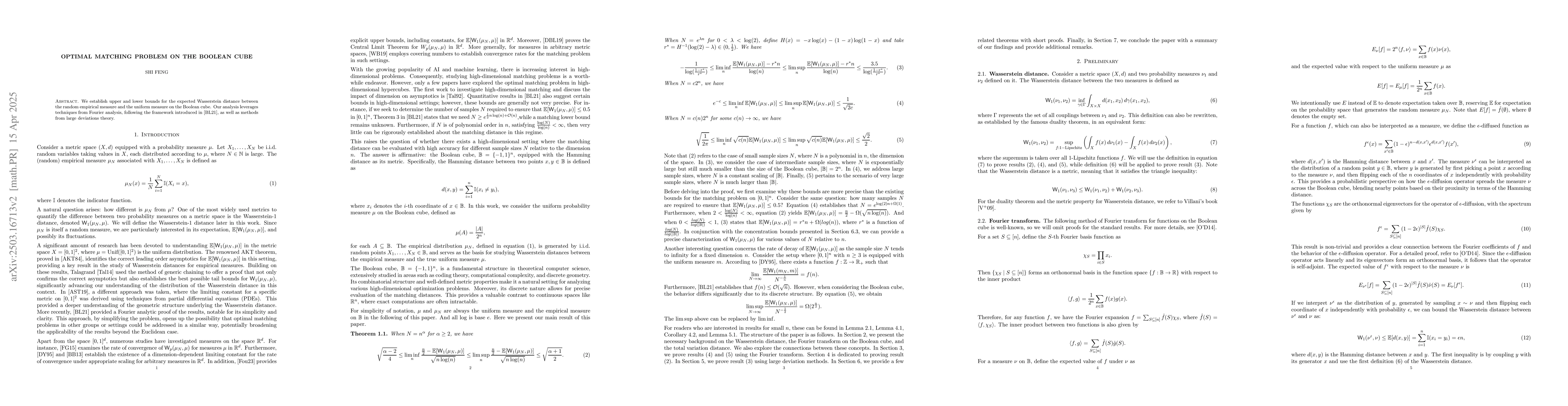 The paper presents a comprehensive analysis of the Optimal Matching Problem on the Boolean cube, providing both upper and lower bounds using advanced mathematical techniques.