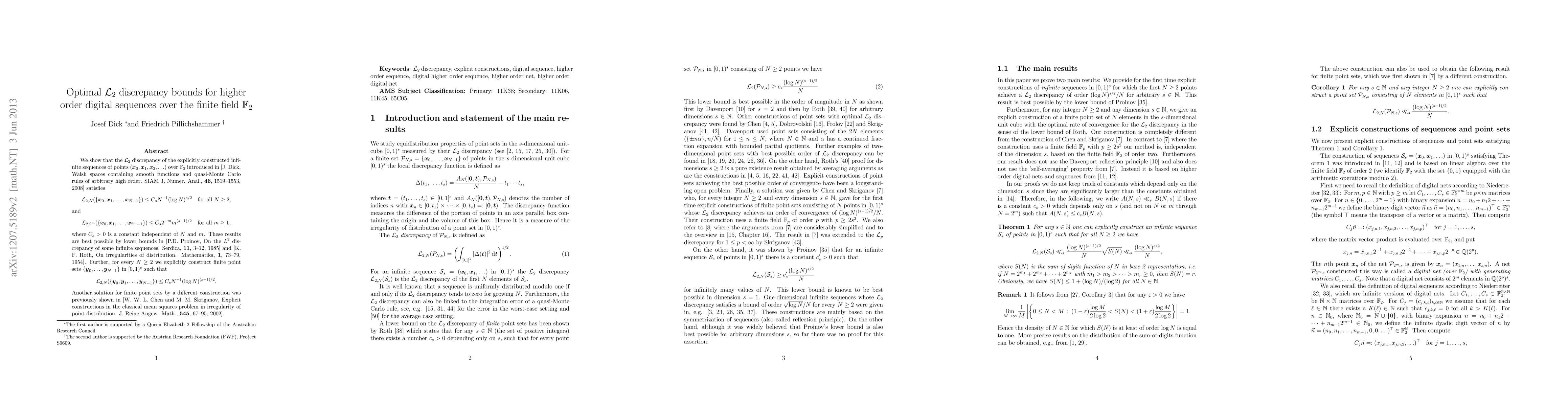 We show that the $\mathcal{L}_2$ discrepancy of the explicitly constructed infinite sequences of points $(\boldsymbol{x}_0,\boldsymbol{x}_1, \boldsymbol{x}_2,...)$ in $[0,1)^s$ over $\mathbb{F}_2$ introduced in [J. Dick, Walsh spaces containing smooth functions and quasi-Monte Carlo rules of arbitrary high order. SIAM J. Numer. Anal., {\bf 46}, 1519--1553, 2008] satisfy $$\mathcal{L}_{2,N}(\{\boldsymbol{x}_0,\boldsymbol{x}_1,..., \boldsymbol{x}_{N-1}\}) \le C_s N^{-1} (\log N)^{s/2} \quad {for all} N \ge 2,$$ and $$\mathcal{L}_{2,2^m}(\{\boldsymbol{x}_0,\boldsymbol{x}_1,..., \boldsymbol{x}_{2^m-1}\}) \le C_s 2^{-m} m^{(s-1)/2} \quad {for all} m \ge 1,$$ where $C_s > 0$ is a constant independent of $N$ and $m$. These results are best possible by lower bounds in [P.D. Proinov, On the $L^2$ discrepancy of some infinite sequences. Serdica, {\bf 11}, 3--12, 1985] and [K. F. Roth, On irregularities of distribution. Mathematika, {\bf 1}, 73--79, 1954]. Further, for every $N \ge 2$ we explicitly construct finite point sets $\{\boldsymbol{y}_0,..., \boldsymbol{y}_{N-1}\}$ in $[0,1)^s$ such that $$\mathcal{L}_{2,N}(\{\boldsymbol{y}_0,\boldsymbol{y}_1,..., \boldsymbol{y}_{N-1}\}) \le C_s N^{-1} (\log N)^{(s-1)/2}.$$ Another solution for finite point sets by a different construction was previously shown in [W. W. L. Chen and M. M. Skriganov, Explicit constructions in the classical mean squares problem in irregularity of point distribution. J. Reine Angew. Math., {\bf 545}, 67--95, 2002].