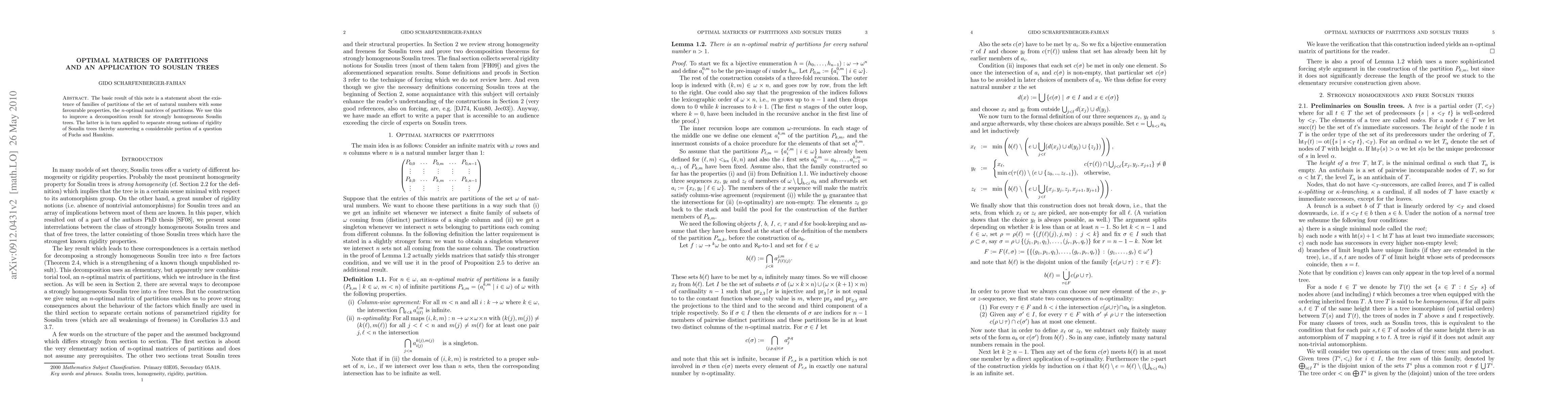 This paper establishes the existence of n-optimal matrices of partitions for natural numbers and applies this result to enhance the decomposition of strongly homogeneous Souslin trees, ultimately addressing a significant part of a question posed by Fuchs and Hamkins regarding the rigidity of Souslin trees.