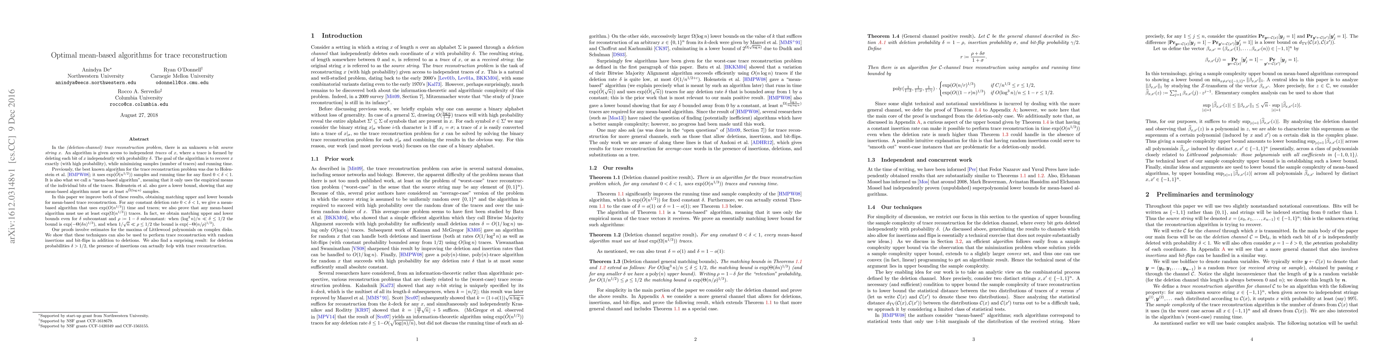 In the (deletion-channel) trace reconstruction problem, there is an unknown $n$-bit source string $x$. An algorithm is given access to independent traces of $x$, where a trace is formed by deleting each bit of~$x$ independently with probability~$\delta$. The goal of the algorithm is to recover~$x$ exactly (with high probability), while minimizing samples (number of traces) and running time. Previously, the best known algorithm for the trace reconstruction problem was due to Holenstein~et~al.; it uses $\exp(\tilde{O}(n^{1/2}))$ samples and running time for any fixed $0 < \delta < 1$. It is also what we call a "mean-based algorithm", meaning that it only uses the empirical means of the individual bits of the traces. Holenstein~et~al.~also gave a lower bound, showing that any mean-based algorithm must use at least $n^{\tilde{\Omega}(\log n)}$ samples. In this paper we improve both of these results, obtaining matching upper and lower bounds for mean-based trace reconstruction. For any constant deletion rate $0 < \delta < 1$, we give a mean-based algorithm that uses $\exp(O(n^{1/3}))$ time and traces; we also prove that any mean-based algorithm must use at least $\exp(\Omega(n^{1/3}))$ traces. In fact, we obtain matching upper and lower bounds even for $\delta$ subconstant and $\rho := 1-\delta$ subconstant: when $(\log^3 n)/n \ll \delta \leq 1/2$ the bound is $\exp(-\Theta(\delta n)^{1/3})$, and when $1/\sqrt{n} \ll \rho \leq 1/2$ the bound is $\exp(-\Theta(n/\rho)^{1/3})$. Our proofs involve estimates for the maxima of Littlewood polynomials on complex disks. We show that these techniques can also be used to perform trace reconstruction with random insertions and bit-flips in addition to deletions. We also find a surprising result: for deletion probabilities $\delta > 1/2$, the presence of insertions can actually help with trace reconstruction.