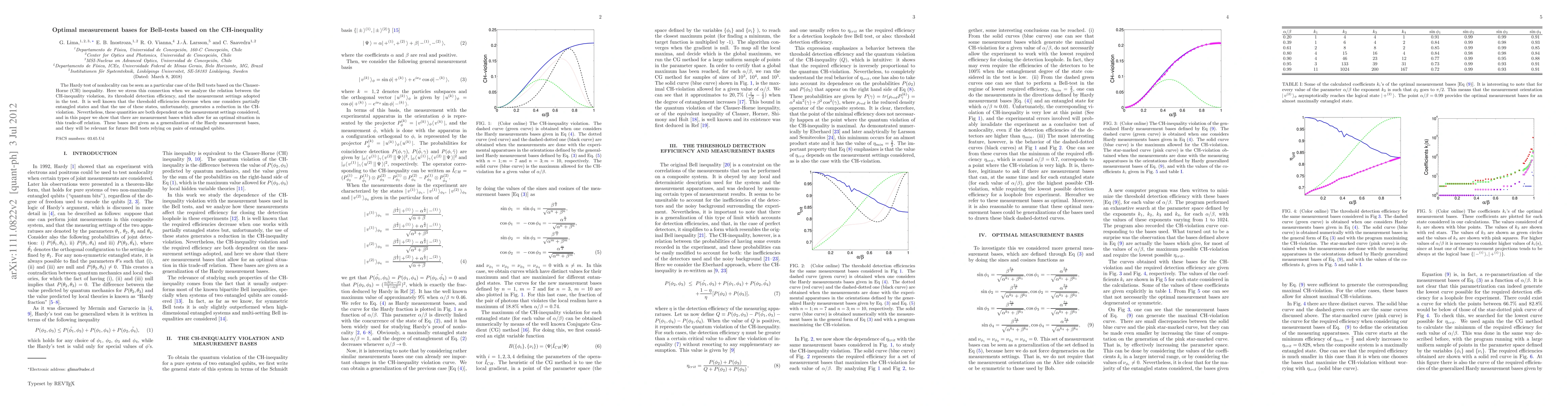 This paper investigates optimal measurement bases for Bell-tests based on the CH-inequality, showing that certain bases can maximize threshold detection efficiency while minimizing the reduction in CH violation caused by partially entangled states. These bases generalize the Hardy measurement bases and are crucial for future Bell tests with entangled qubit pairs.