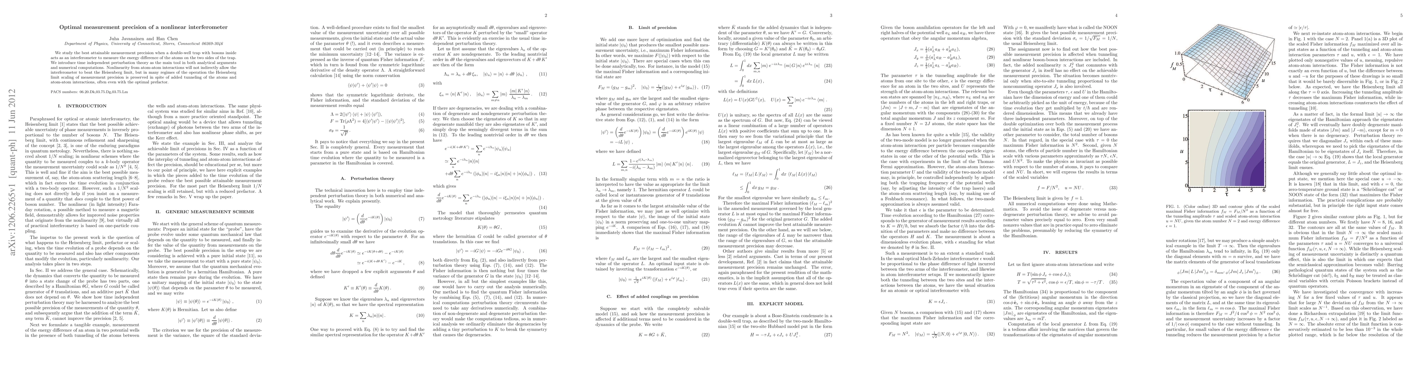 We study the best attainable measurement precision when a double-well trap with bosons inside acts as an interferometer to measure the energy difference of the atoms on the two sides of the trap. We introduce time independent perturbation theory as the main tool in both analytical arguments and numerical computations. Nonlinearity from atom-atom interactions will not indirectly allow the interferometer to beat the Heisenberg limit, but in many regimes of the operation the Heisenberg limit scaling of measurement precision is preserved in spite of added tunneling of the atoms and atom-atom interactions, often even with the optimal prefactor.