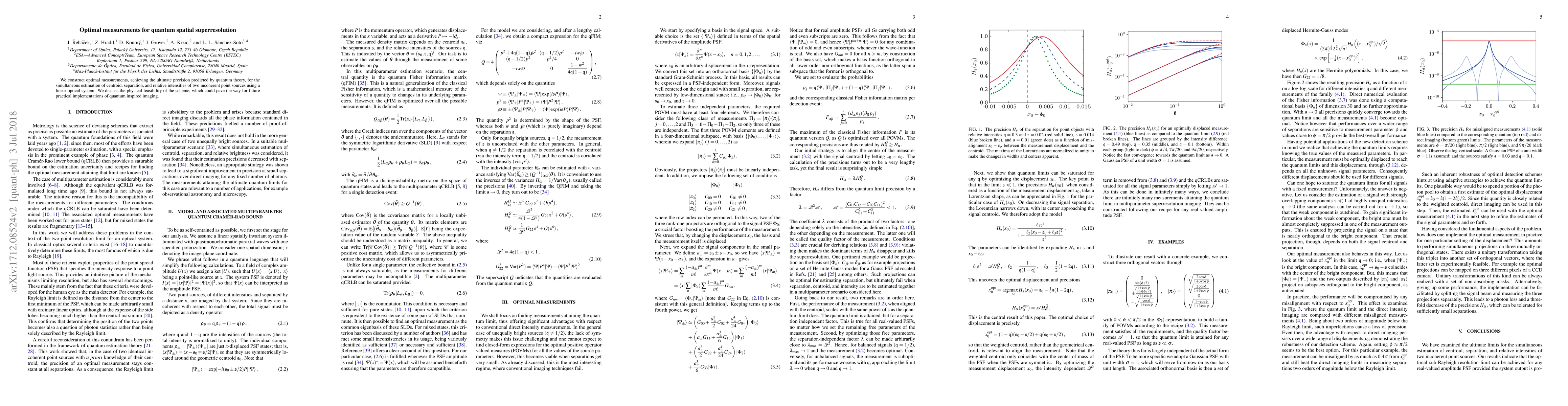 This paper develops optimal quantum measurements to maximize precision in estimating the centroid, separation, and intensities of two incoherent point sources using a linear optical system. The proposed scheme is discussed for its physical feasibility, potentially enabling advanced quantum-inspired imaging techniques.