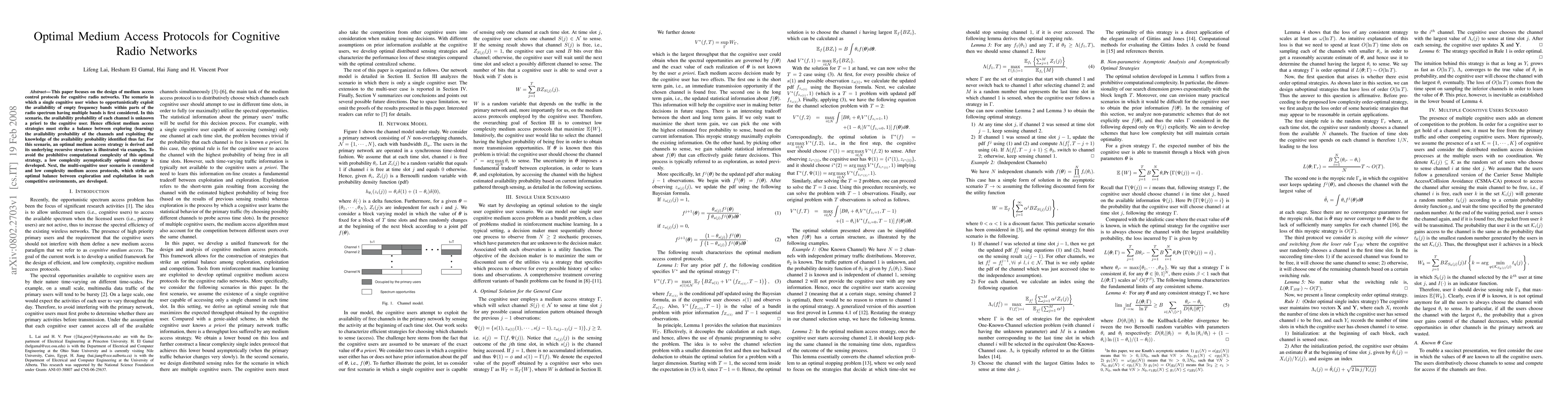 This paper develops optimal medium access protocols for cognitive radio networks, balancing exploration and exploitation of frequency bands. It proposes an optimal strategy and a low-complexity alternative for single and multi-cognitive user scenarios.