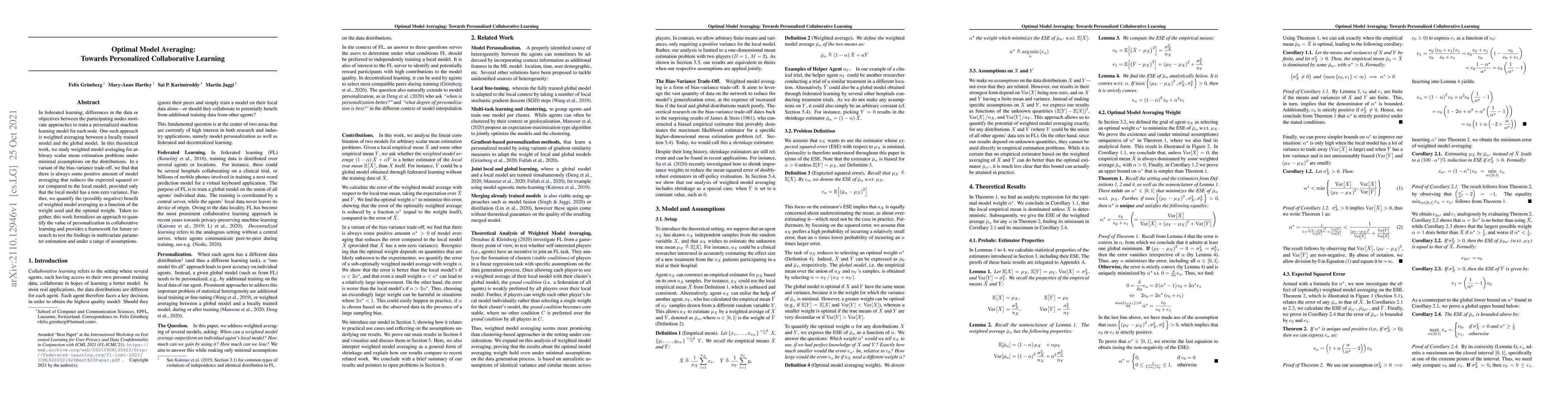 Researchers show that weighted model averaging can reduce expected squared error in machine learning models, even when local models have zero variance. This approach offers a framework for personalized collaborative learning and quantifies the benefits of personalization in collaborative settings.