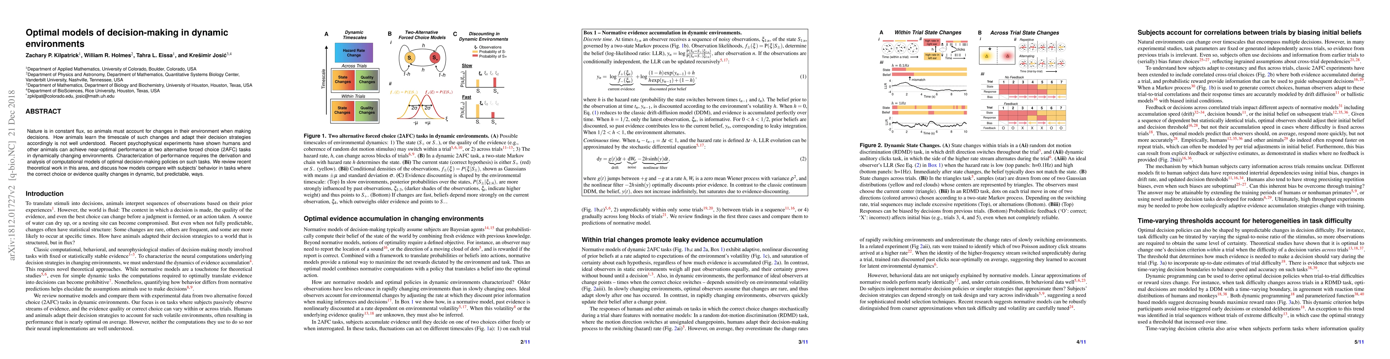 This paper reviews theoretical models of optimal decision-making in dynamic environments, focusing on how animals adapt their strategies to changes in their surroundings. It compares these models with empirical findings from psychophysical experiments on human and animal performance in dynamic 2AFC tasks.
