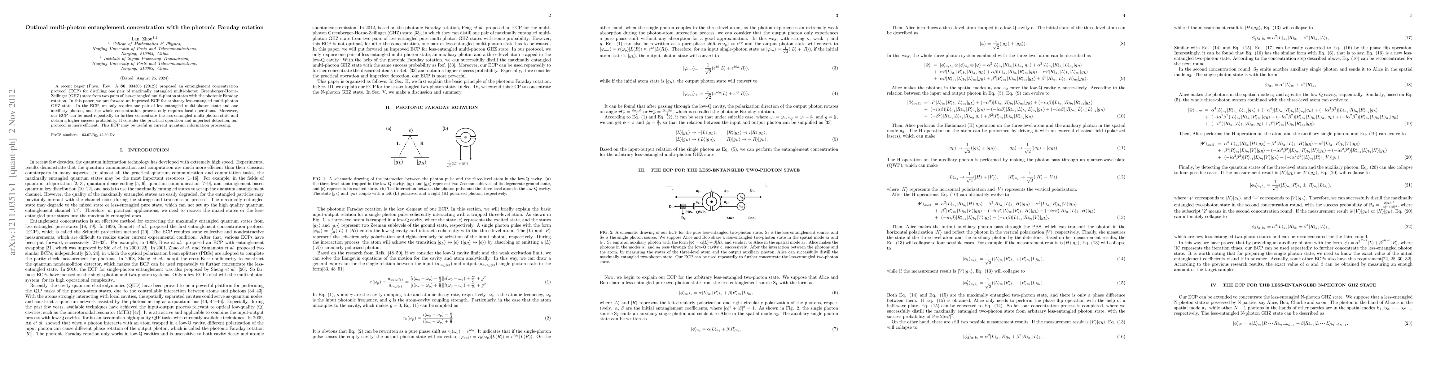This paper proposes an improved entanglement concentration protocol (ECP) for distilling maximally entangled multi-photon GHZ states using photonic Faraday rotation, requiring only local operations and an auxiliary photon. This protocol enhances efficiency and success probability, making it practical for quantum information processing.