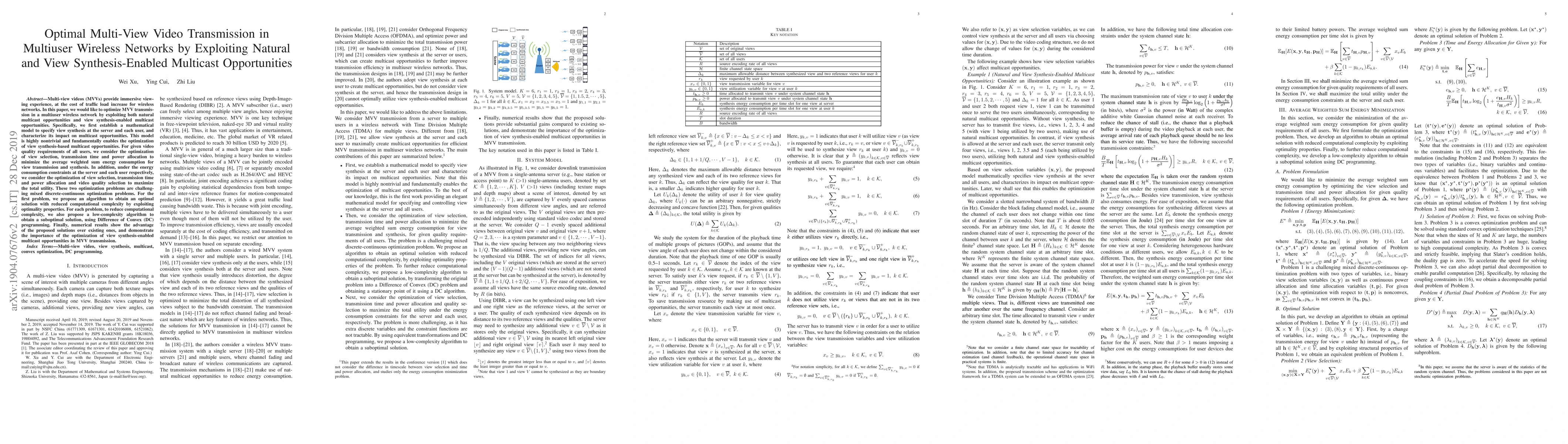 This paper optimizes the transmission of multi-view videos in multiuser wireless networks by leveraging both natural and view synthesis-enabled multicast opportunities. It proposes algorithms for minimizing energy consumption and maximizing utility under constraints, using mathematical modeling and low-complexity DC programming.