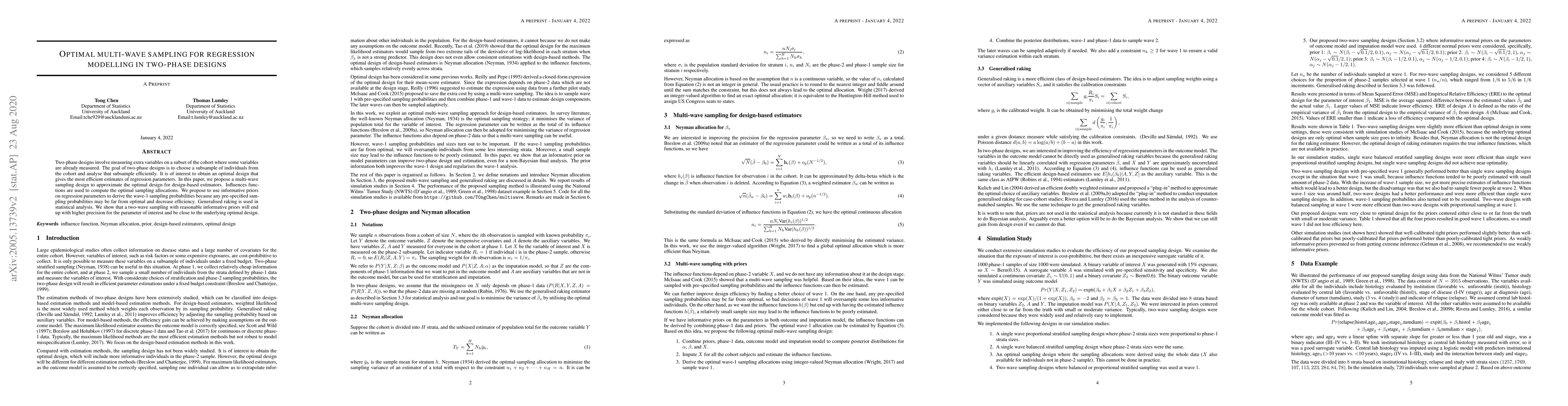 Two-phase designs involve measuring extra variables on a subset of the cohort where some variables are already measured. The goal of two-phase designs is to choose a subsample of individuals from the cohort and analyse that subsample efficiently. It is of interest to obtain an optimal design that gives the most efficient estimates of regression parameters. In this paper, we propose a multi-wave sampling design to approximate the optimal design for design-based estimators. Influences functions are used to compute the optimal sampling allocations. We propose to use informative priors on regression parameters to derive the wave-1 sampling probabilities because any pre-specified sampling probabilities may be far from optimal and decrease efficiency. Generalised raking is used in statistical analysis. We show that a two-wave sampling with reasonable informative priors will end up with higher precision for the parameter of interest and be close to the underlying optimal design.