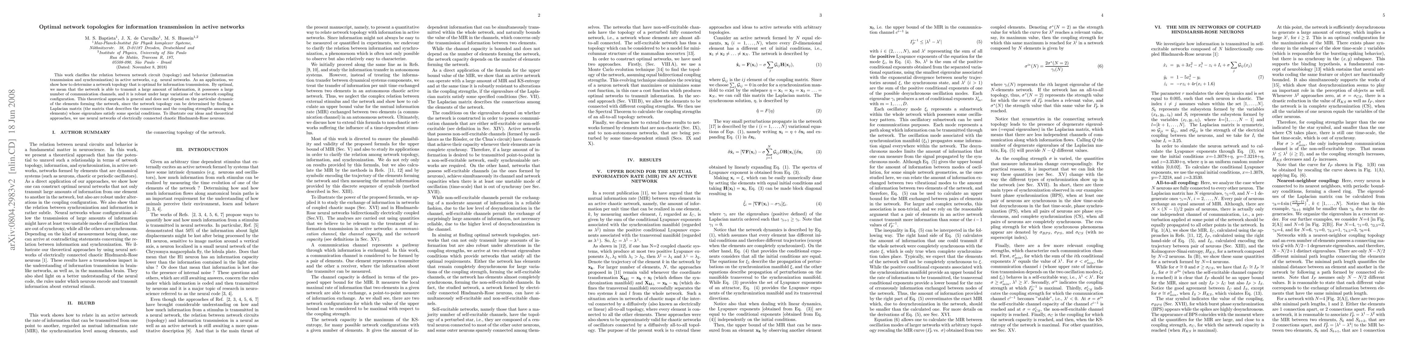 The research paper optimizes network topologies for information transmission in active networks by determining a Laplacian matrix that meets specific conditions, enabling robust information transfer with large capacity.