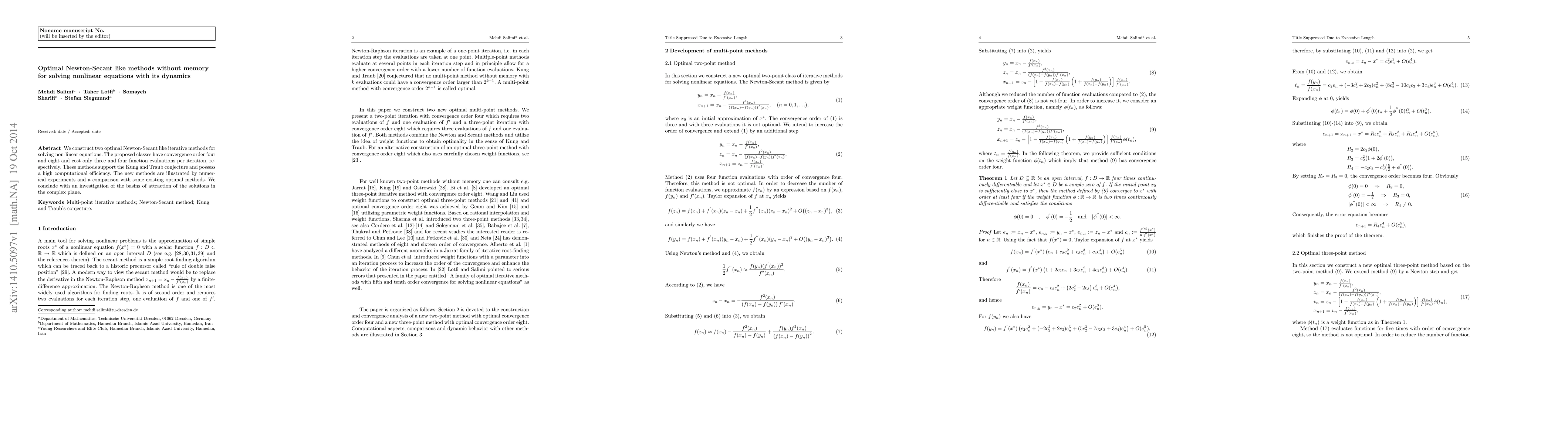 Researchers have developed two optimal Newton-Secant-like methods for solving nonlinear equations, achieving convergence orders of four and eight with minimal function evaluations, supporting the Kung and Traub conjecture.