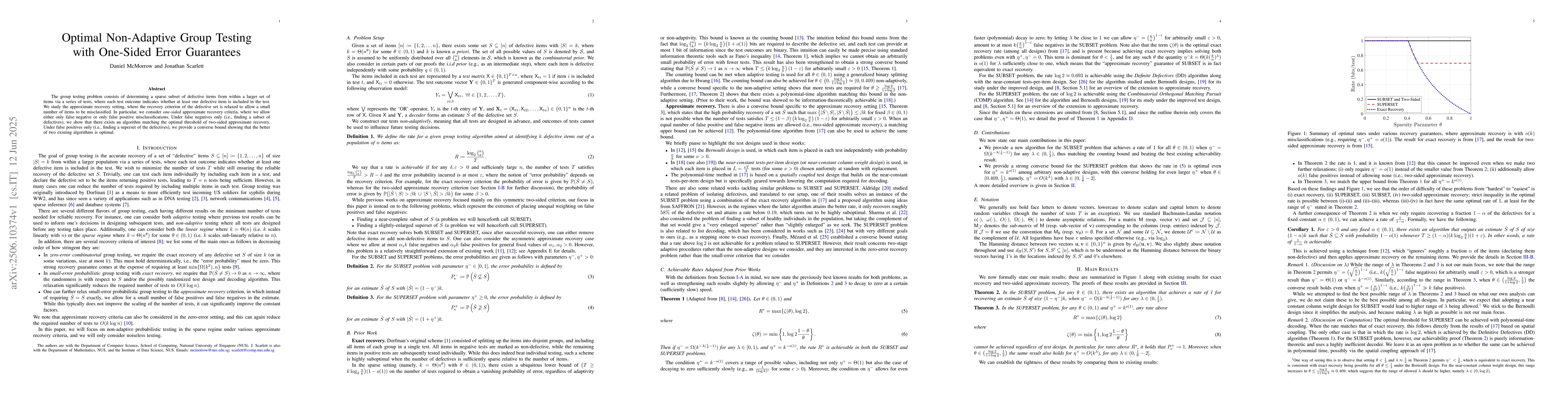 This paper explores group testing for identifying sparse defective items with relaxed recovery criteria allowing small misclassifications. It demonstrates an optimal algorithm for false negative-only recovery and proves the optimality of existing algorithms for false positive-only recovery, establishing converse bounds.